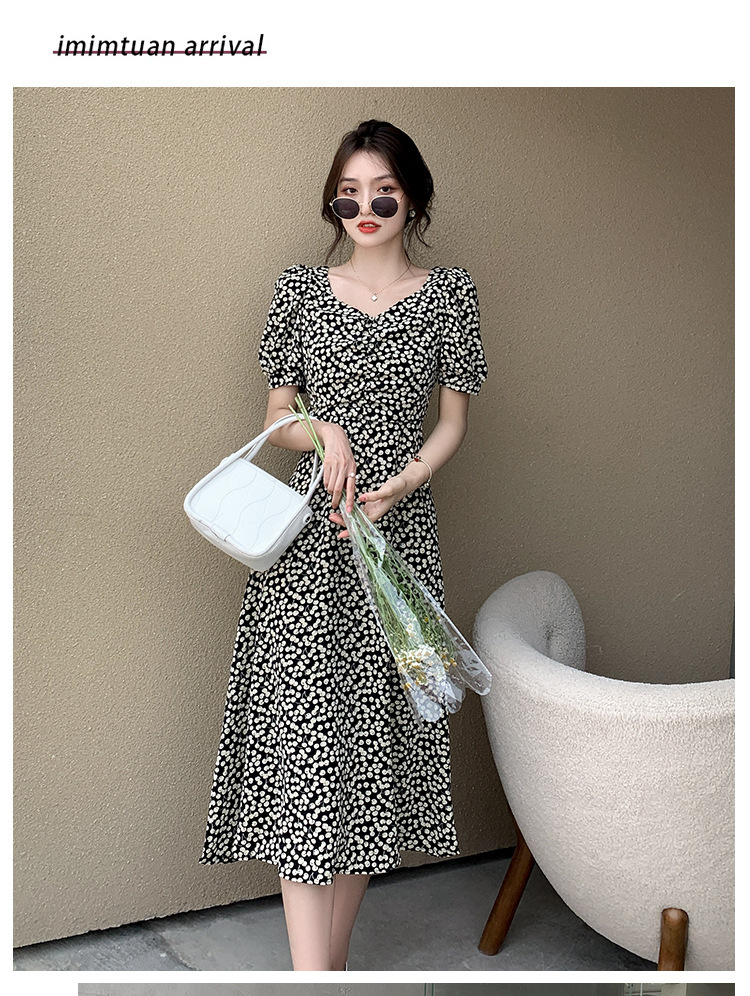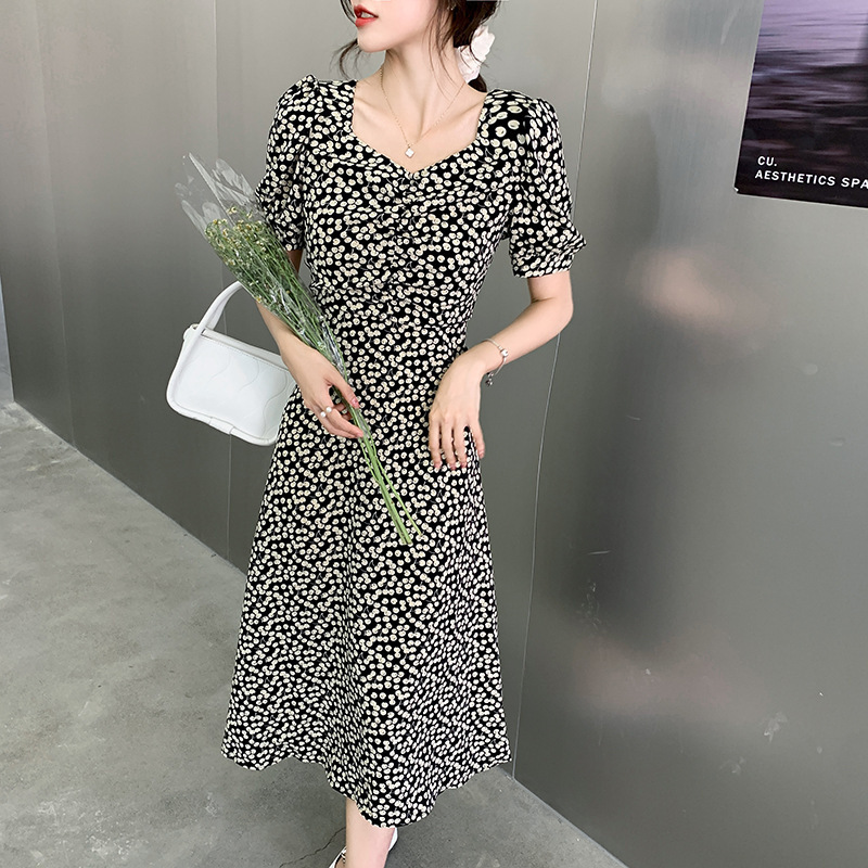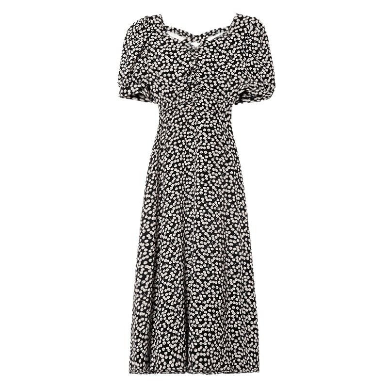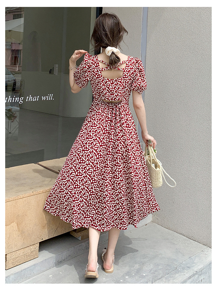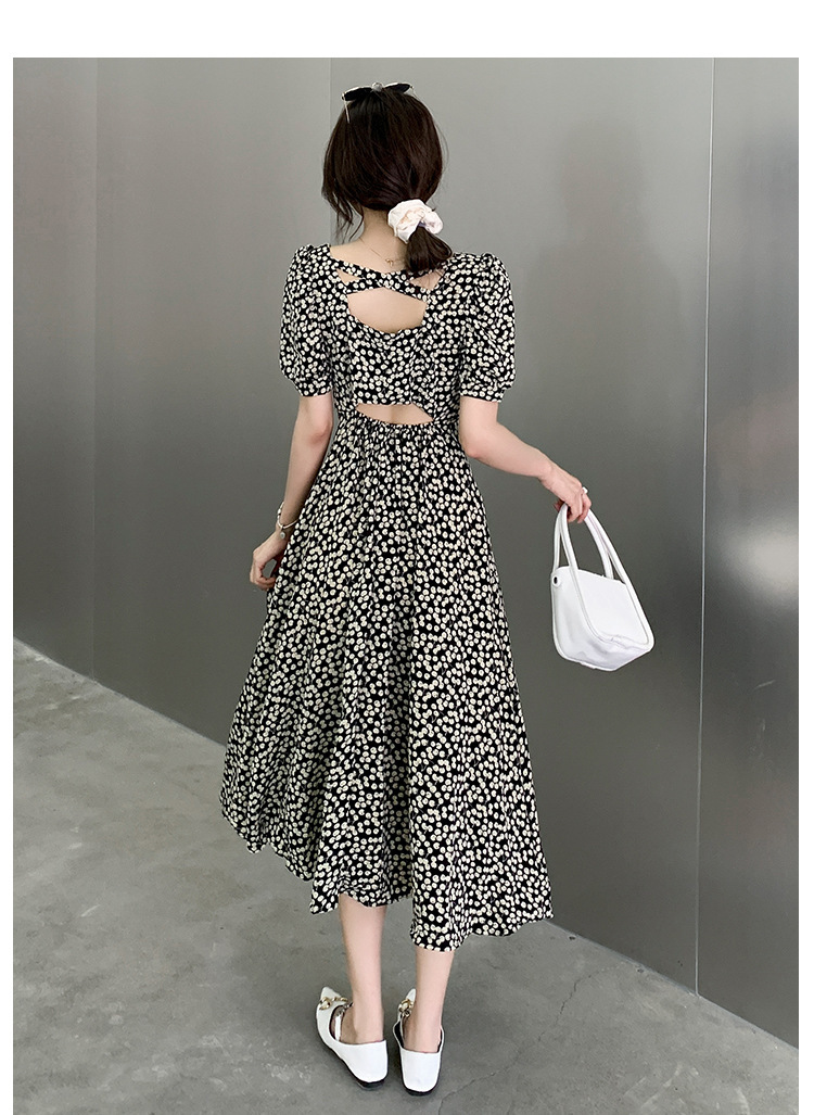 2023 летний новый стиль талии среднего и длинного платья с открытой спиной с пустым французским рукавом с коротким рукавом и коротким рукавом