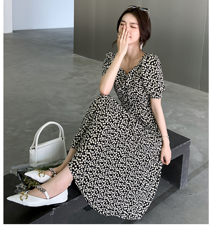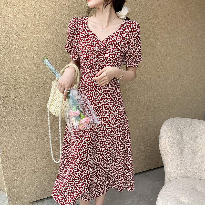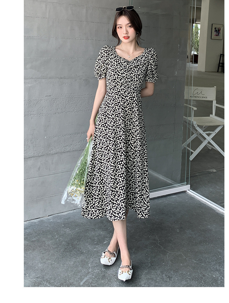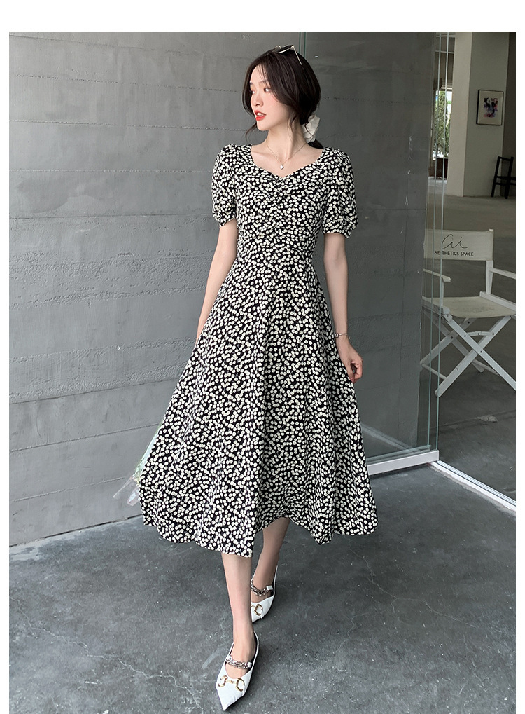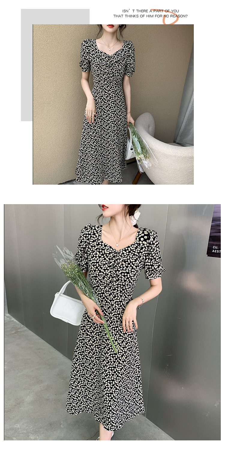 2023 летний новый стиль талии среднего и длинного платья с открытой спиной с пустым французским рукавом с коротким рукавом и коротким рукавом