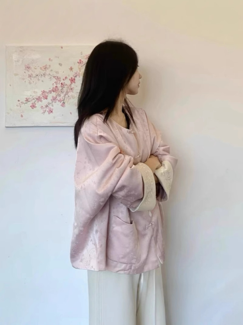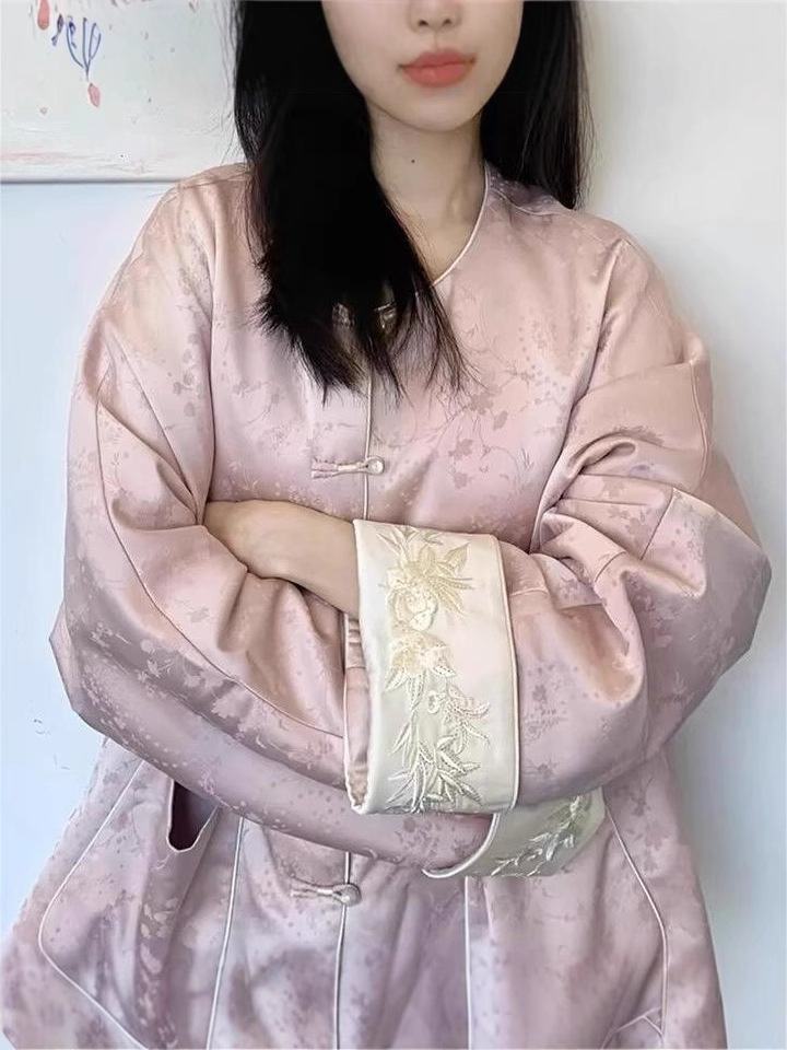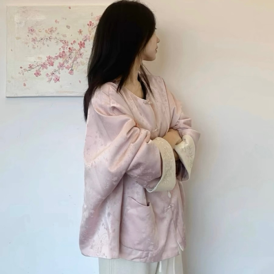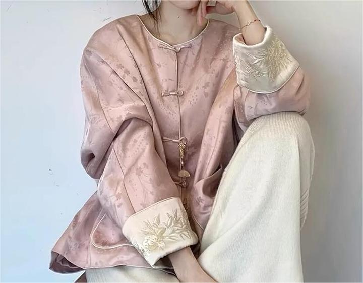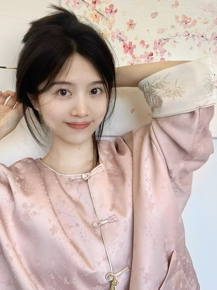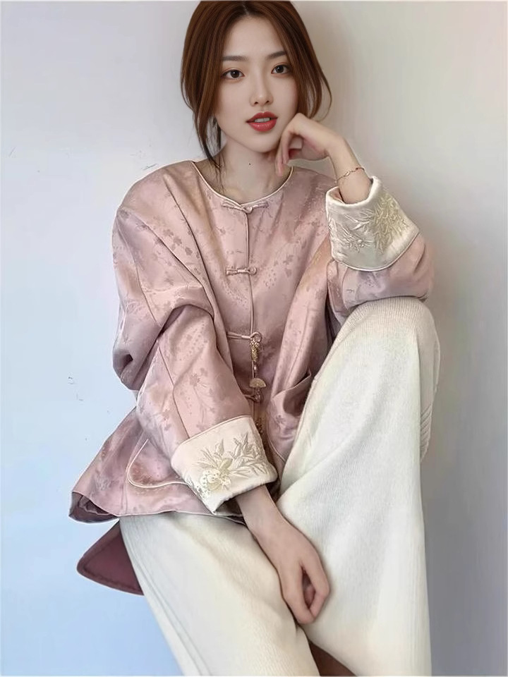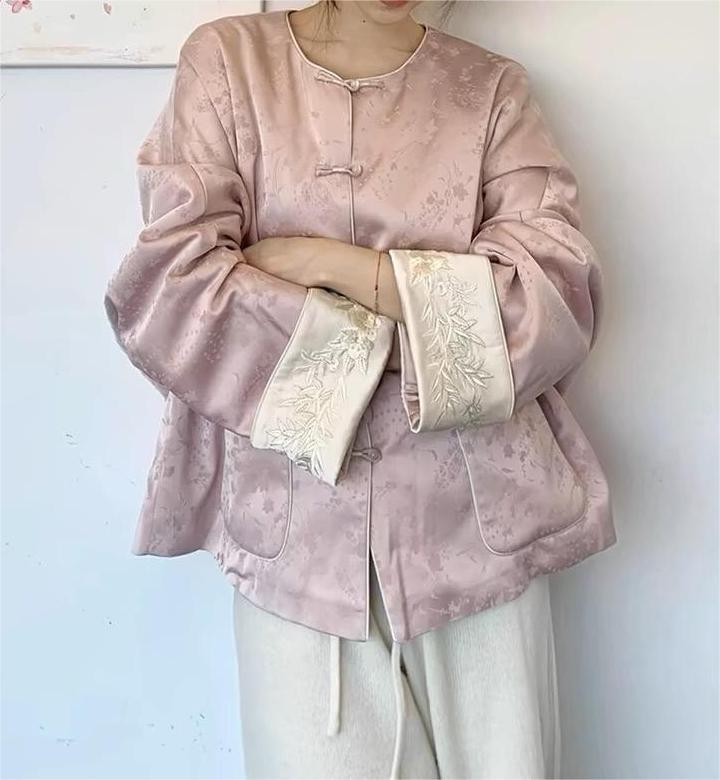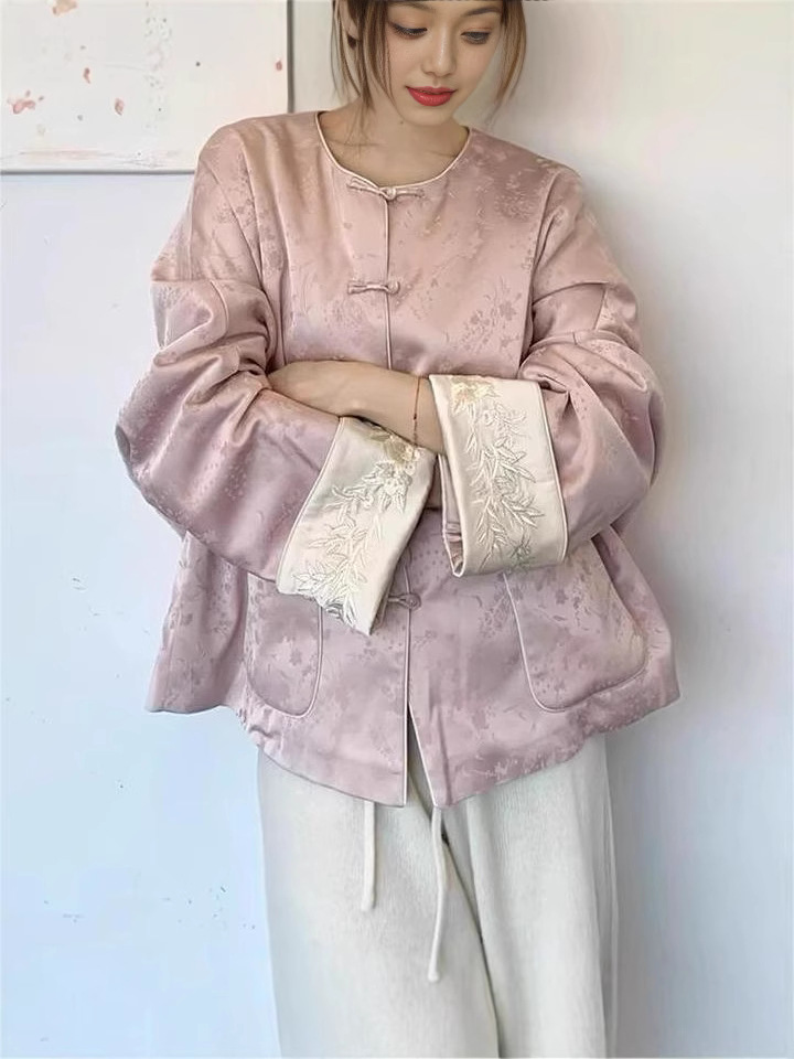 Новый китайский стиль национального стиля Song Jin с пуговицами топ с круглым вырезом