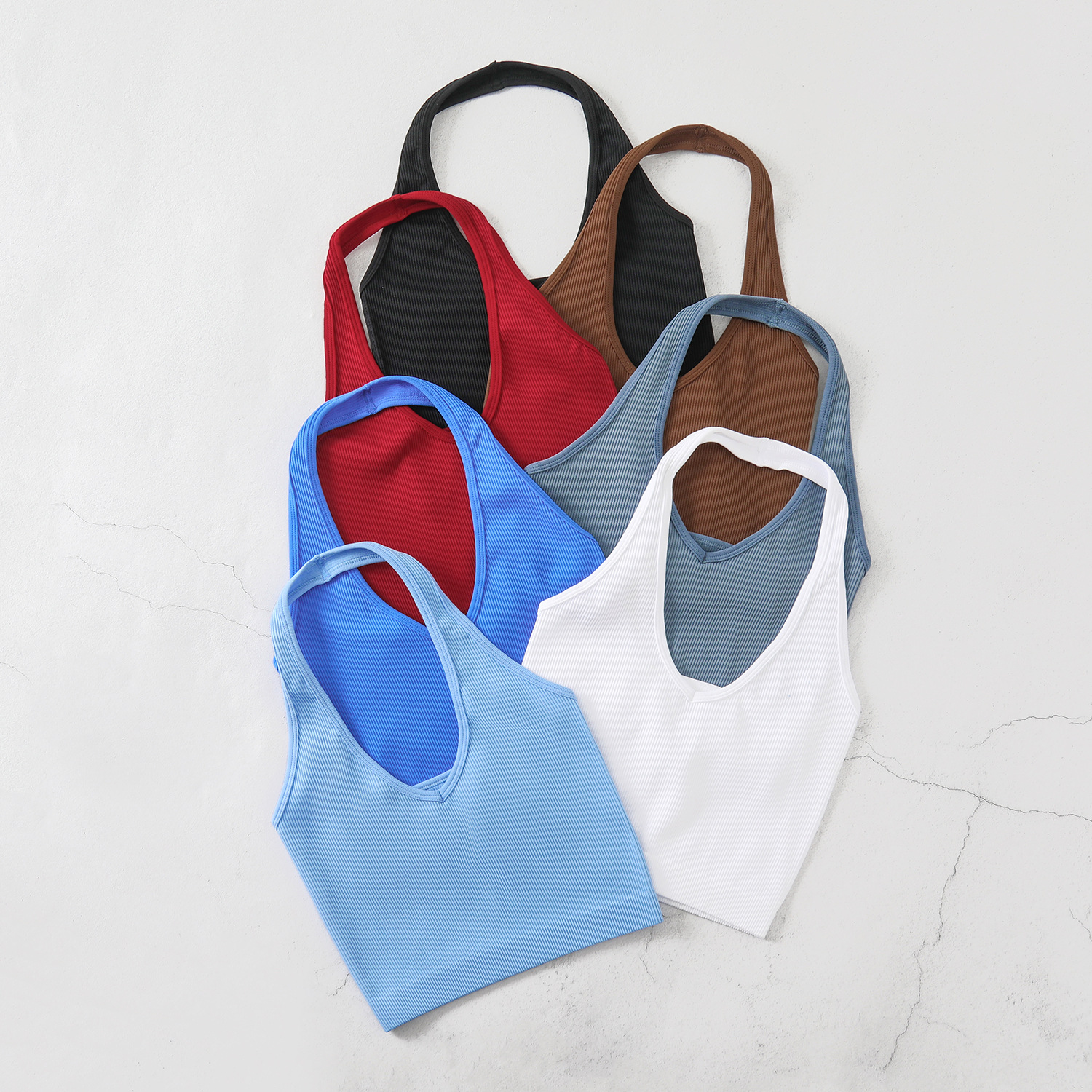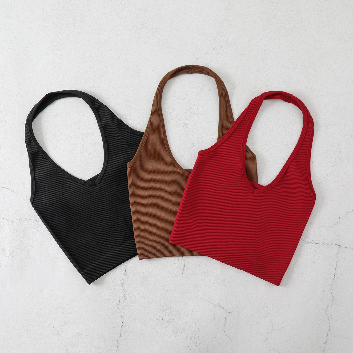 Amazon европейская и американская шея нижнее белье фитнес йога с V-образным вырезом без спинки маленький жилет с резьбой конфеты цвета