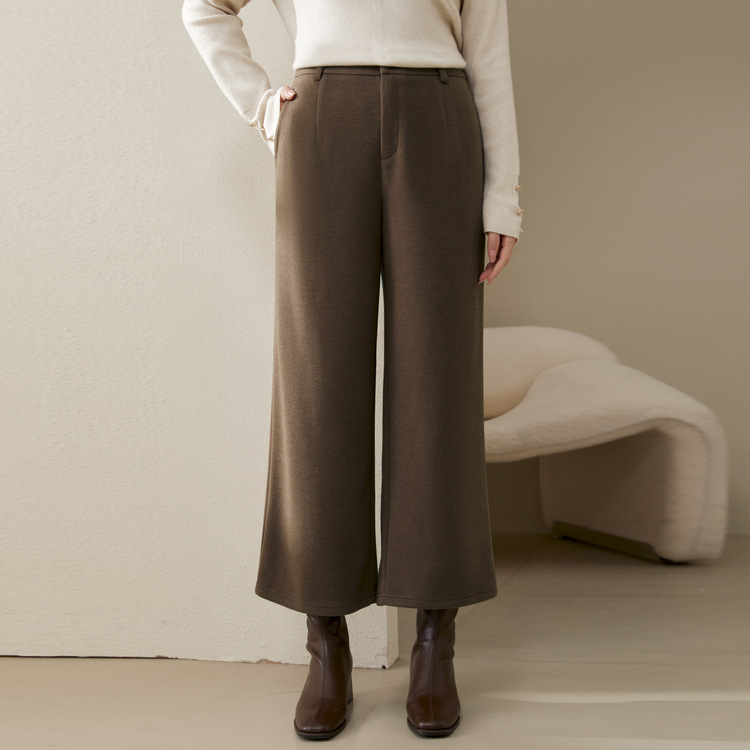 Слепое шоу большой размер женская дикая пригородная прямая крытая тонкая и удобная коричневая брюки толстый mm2024 зимний новый