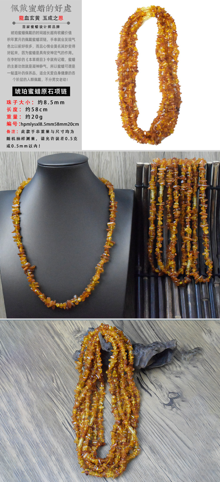 Ожерелье из янтарного пчелиного воска из грубого камня