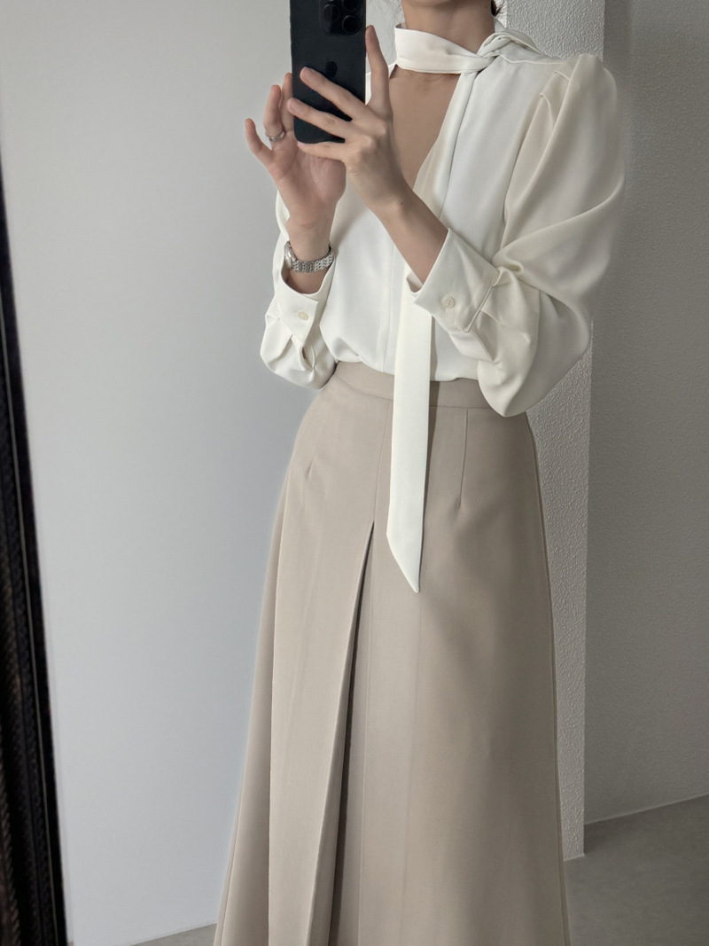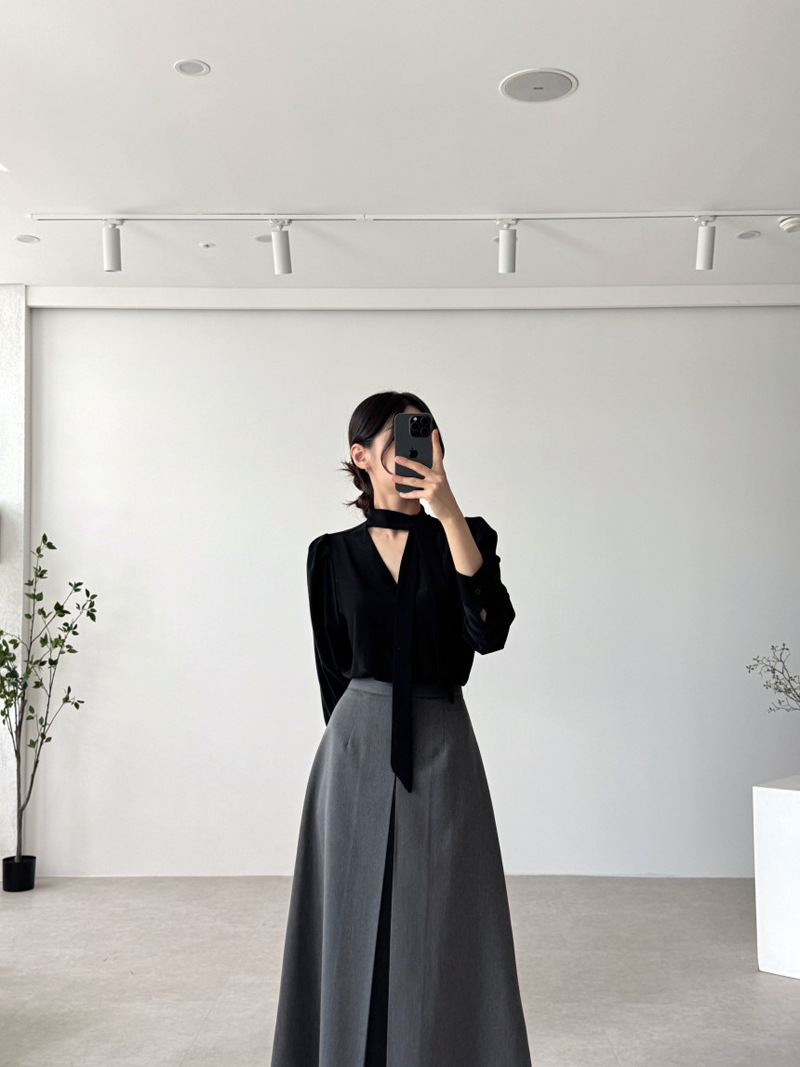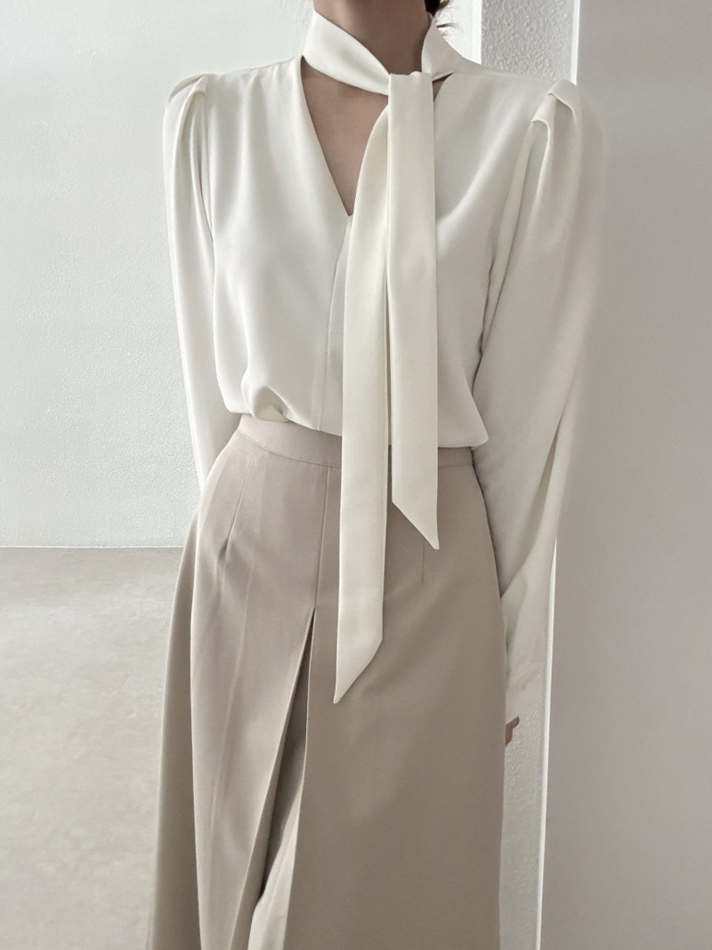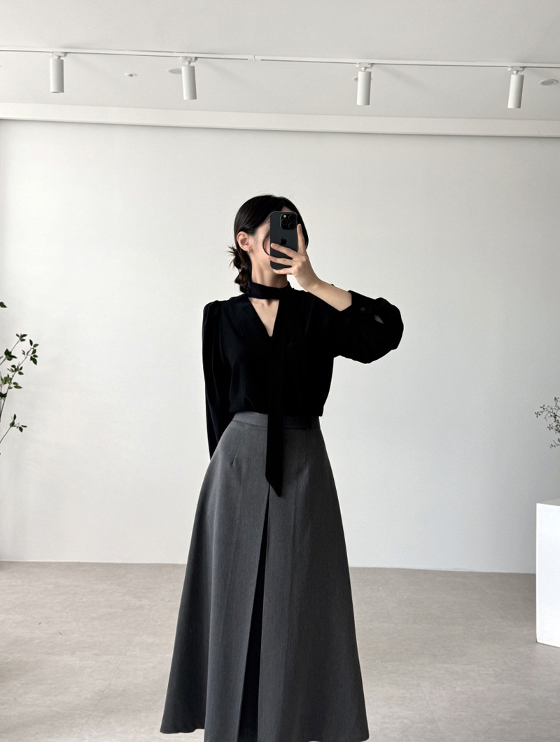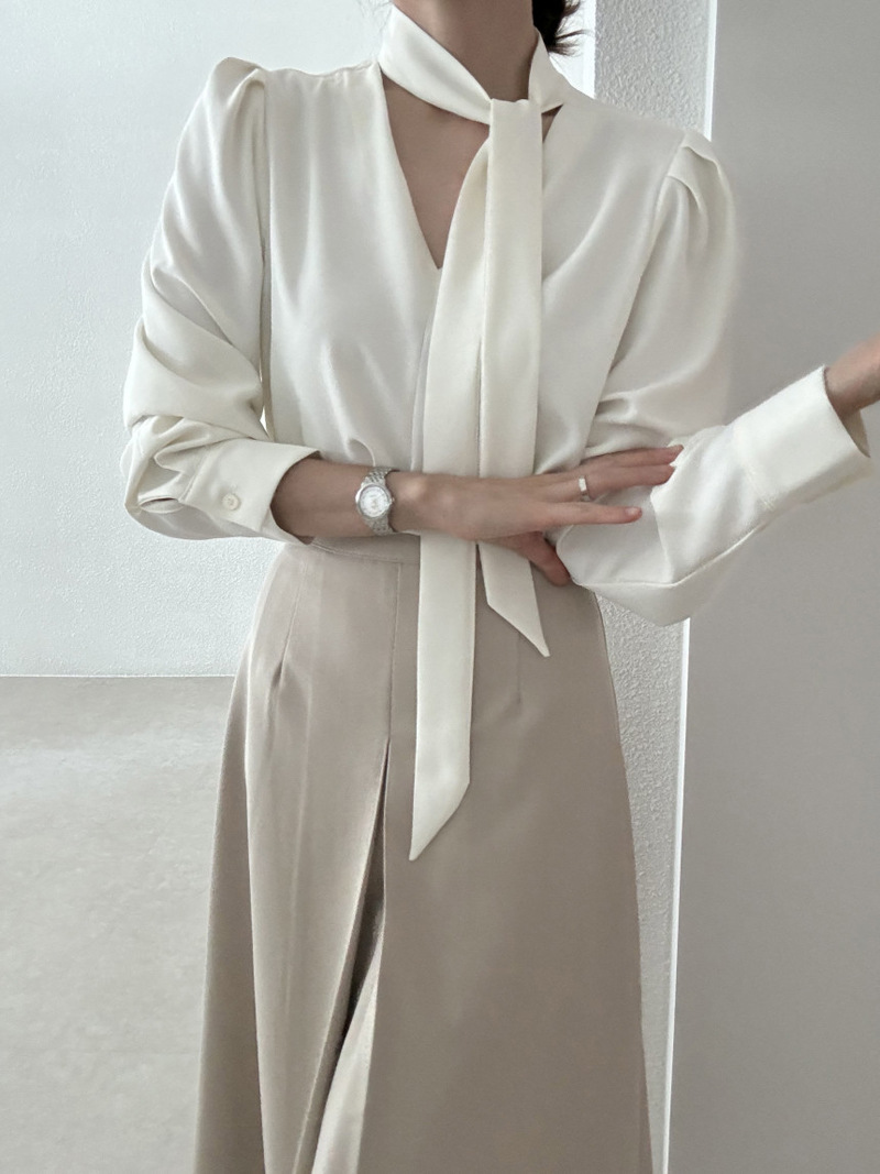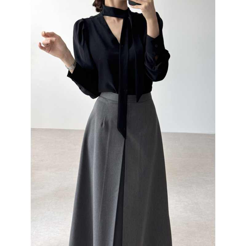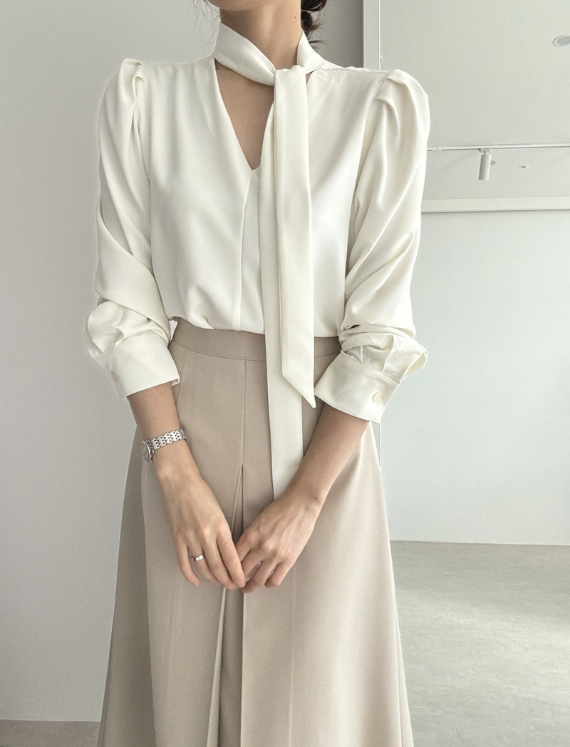 Корейский chic французский темперамент V-образный блузок с высокой талией