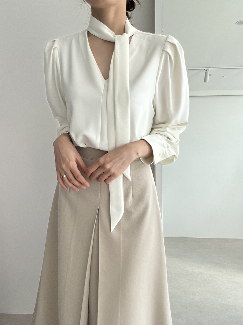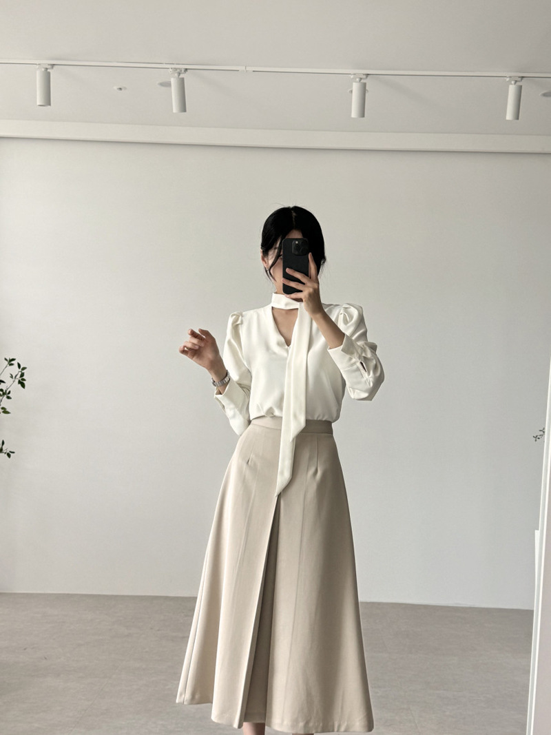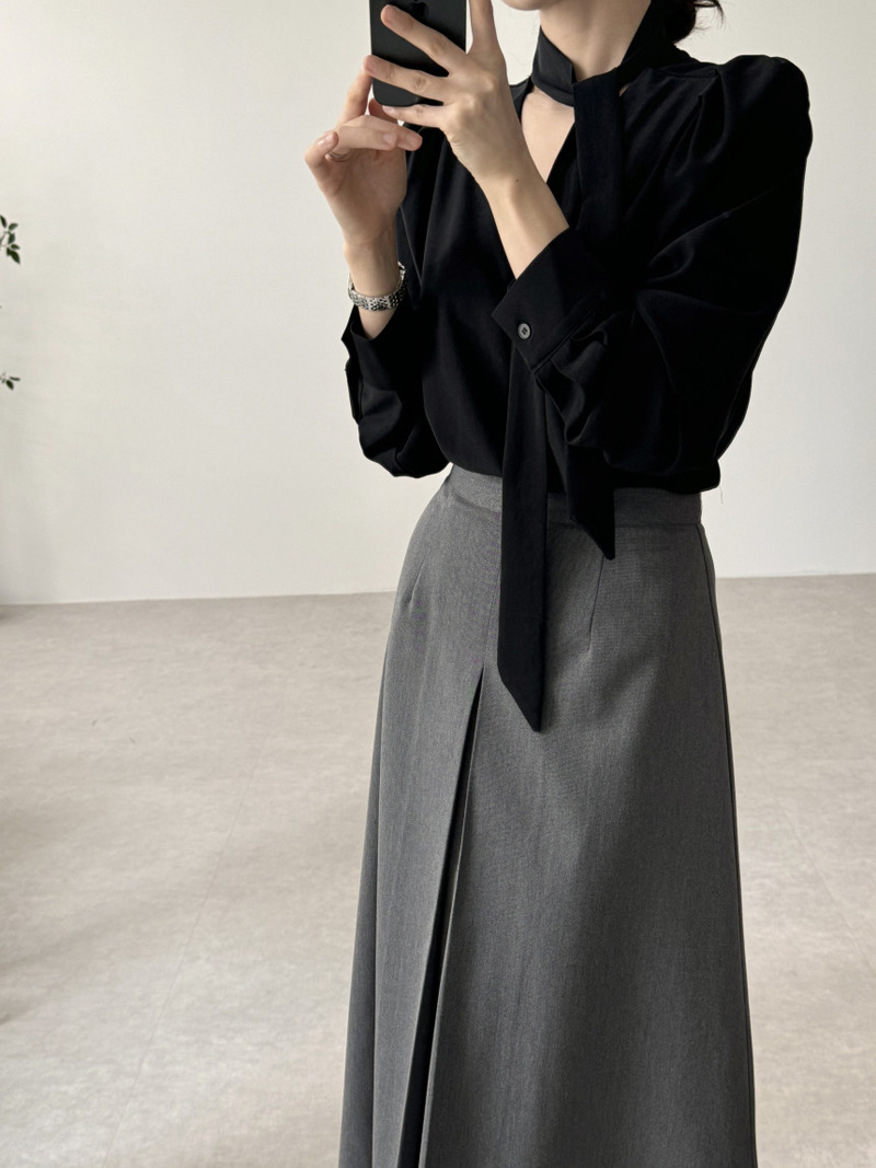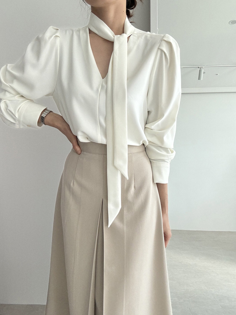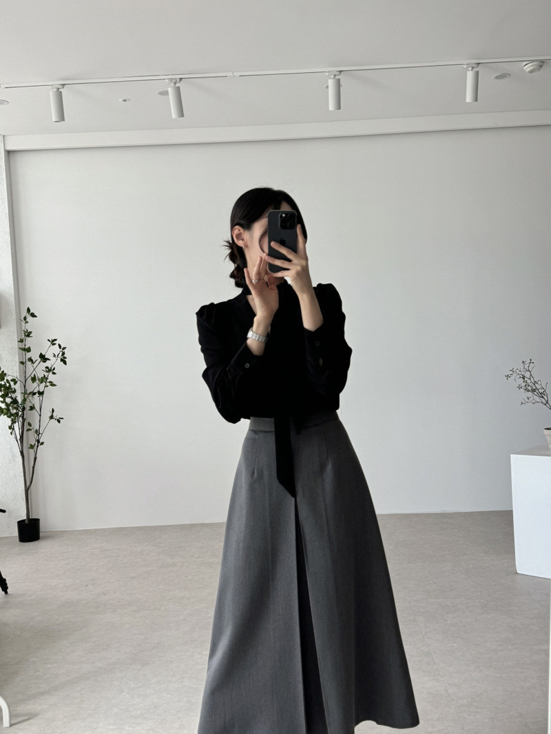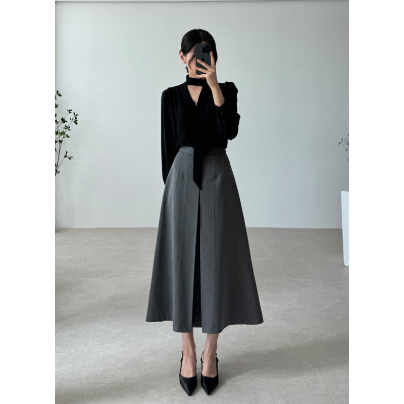 Корейский chic французский темперамент V-образный блузок с высокой талией