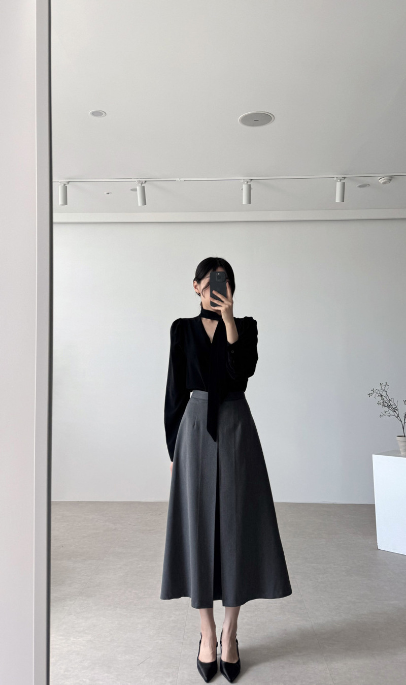 черный топ; серая юбка; абрикосовая юбка; Верх кремово-белый