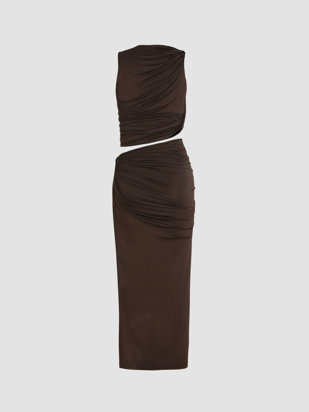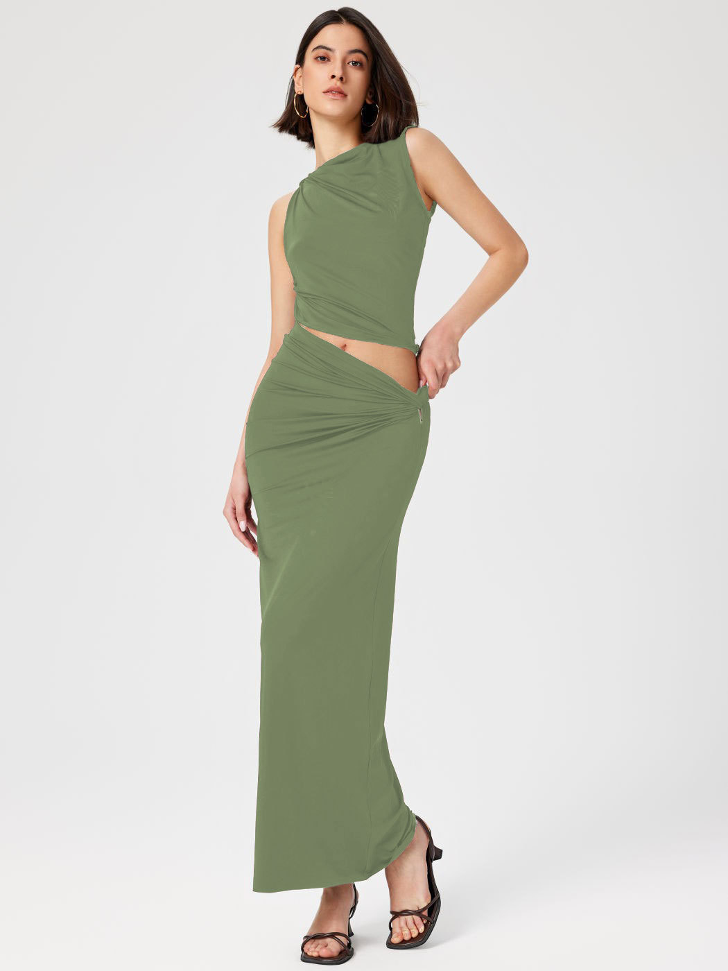 Новинка 2025: Женский трикотажный костюм-юбка Amazon для трансграничной торговли (Европа и Америка), весна-лето, однотонный, приталенный, удобный и стильный.