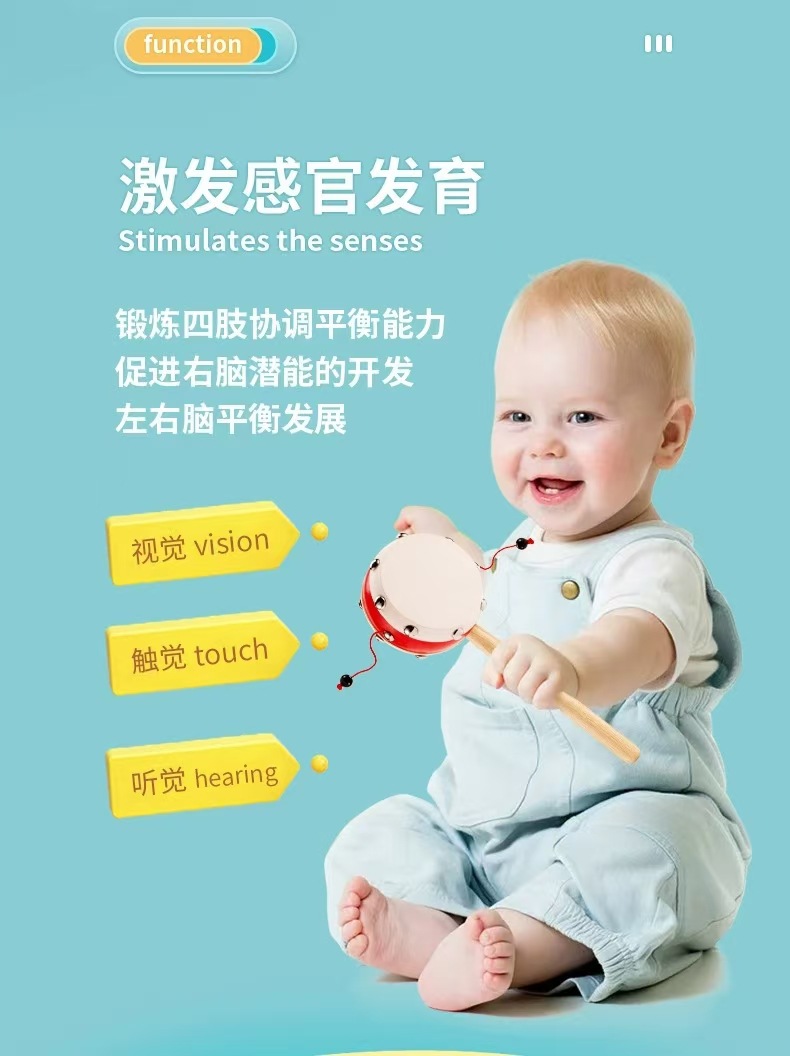 Погремушка детская игрушка может кусать ручную волновой барабан детское деревянное овчинное традиционное детское новорожденные мужчины и женщины