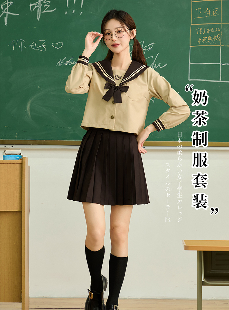 Производитель поставляет jk униформа короткая юбка набор чай с молоком с длинными рукавами плиссированная юбка школьный стиль набор японский топ с короткими рукавами для женщин