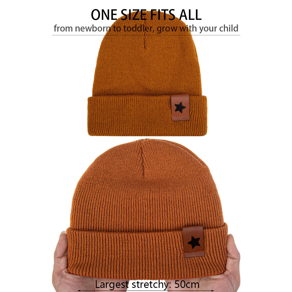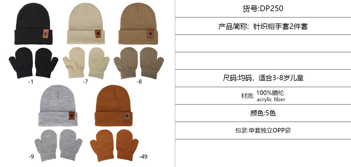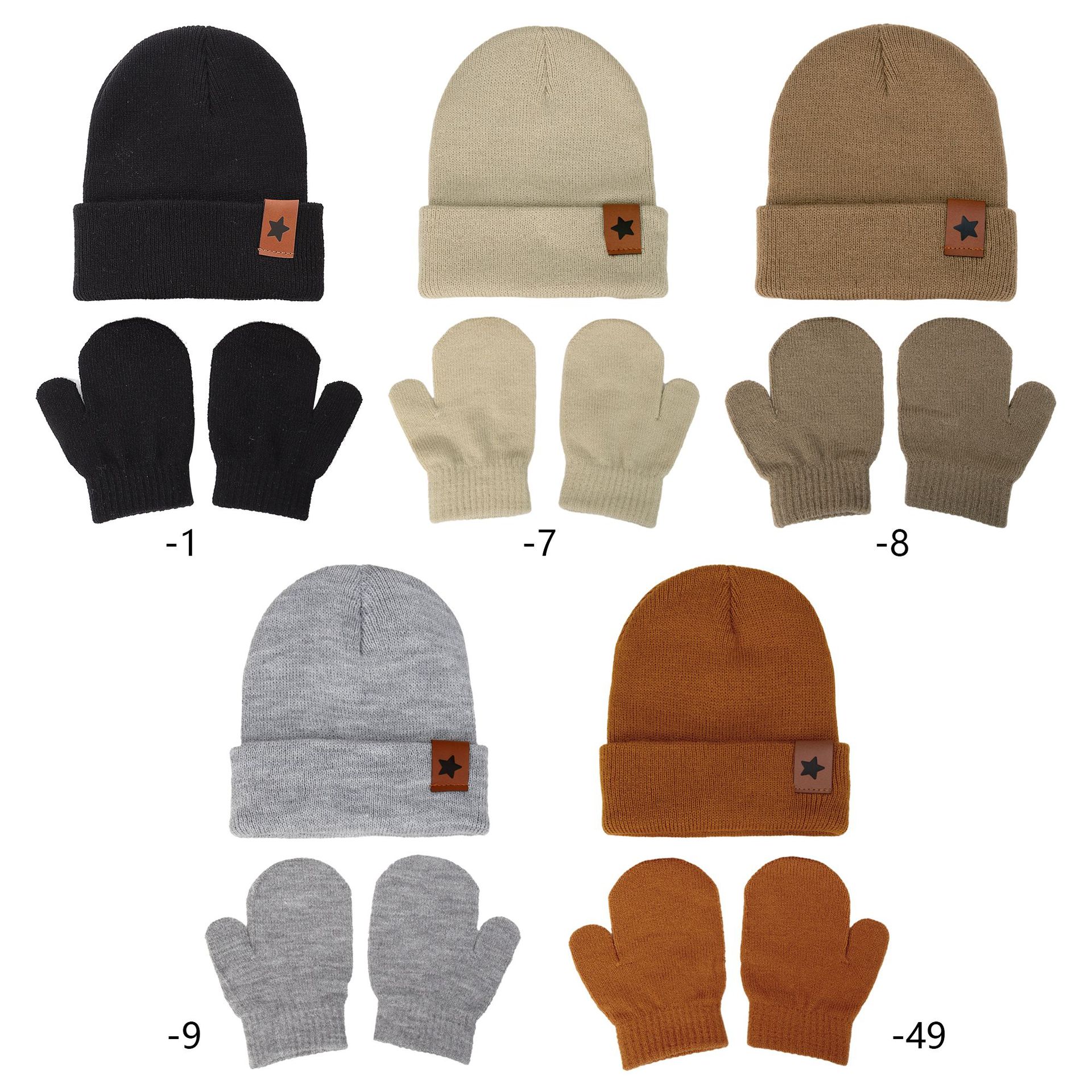 Европейские и американские детские вязаные шапки новые звезды кожаные этикетки из акриловой шерсти пуловер шляпы осенние и зимние теплая шляпа перчатки набор