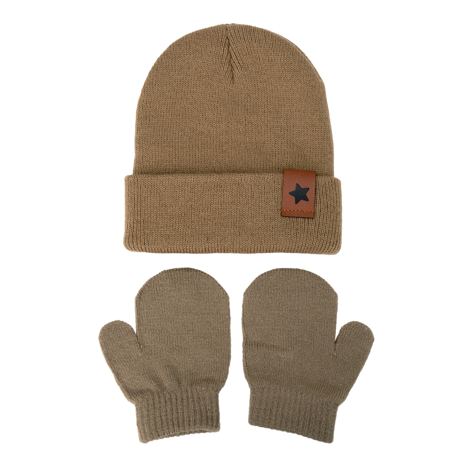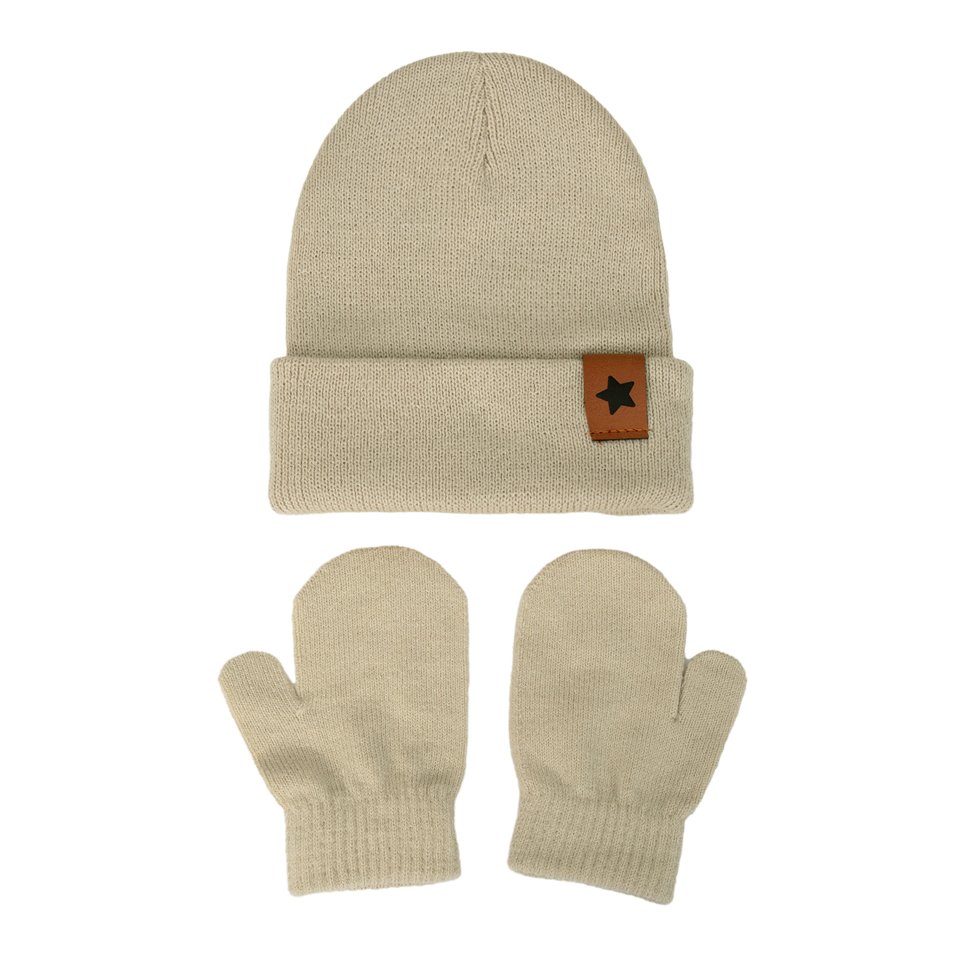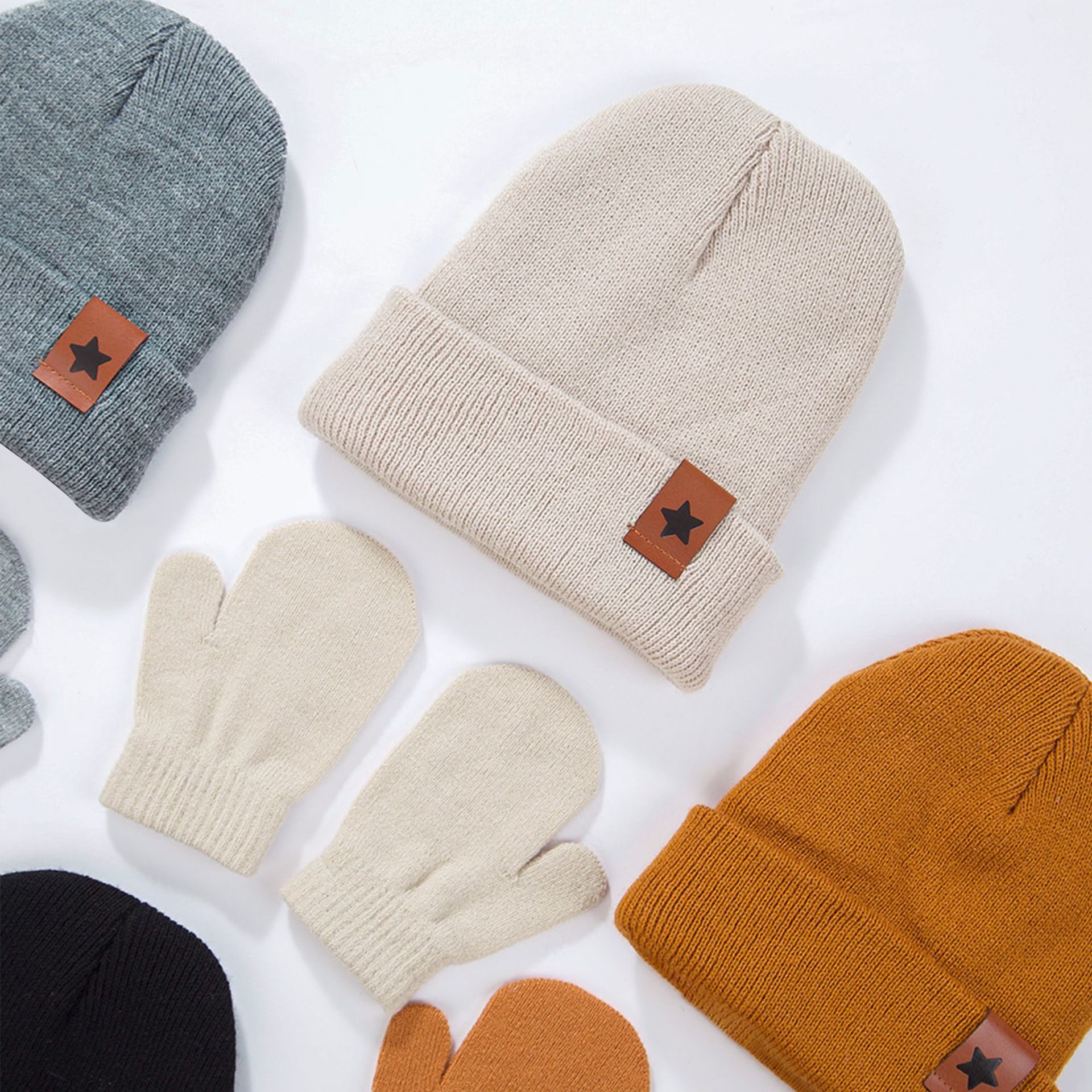 Европейские и американские детские вязаные шапки новые звезды кожаные этикетки из акриловой шерсти пуловер шляпы осенние и зимние теплая шляпа перчатки набор