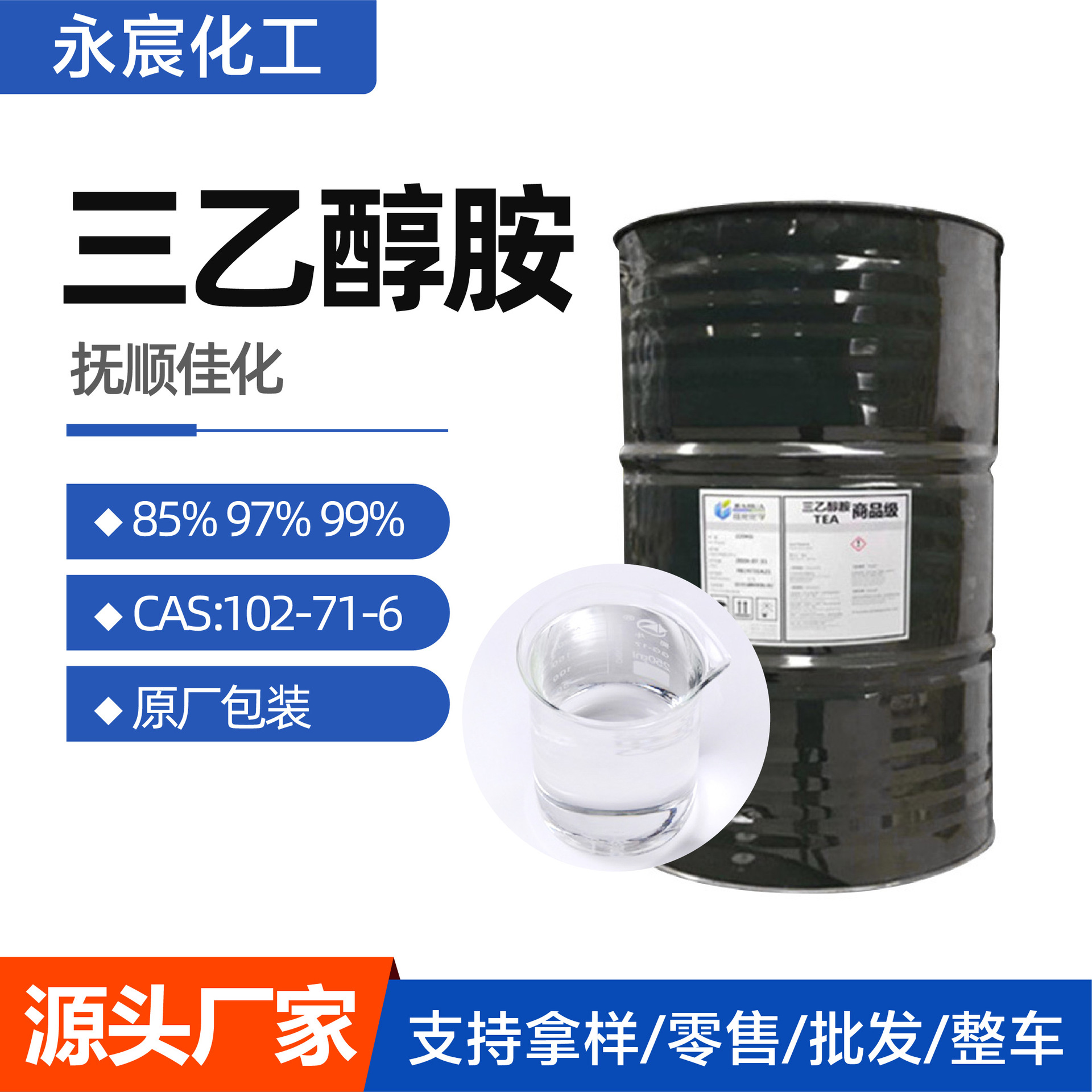 Производитель триэтаноламина Fushun Jiaha 85% 97% 99% промышленный триэтаноламин для цементной шлифовки