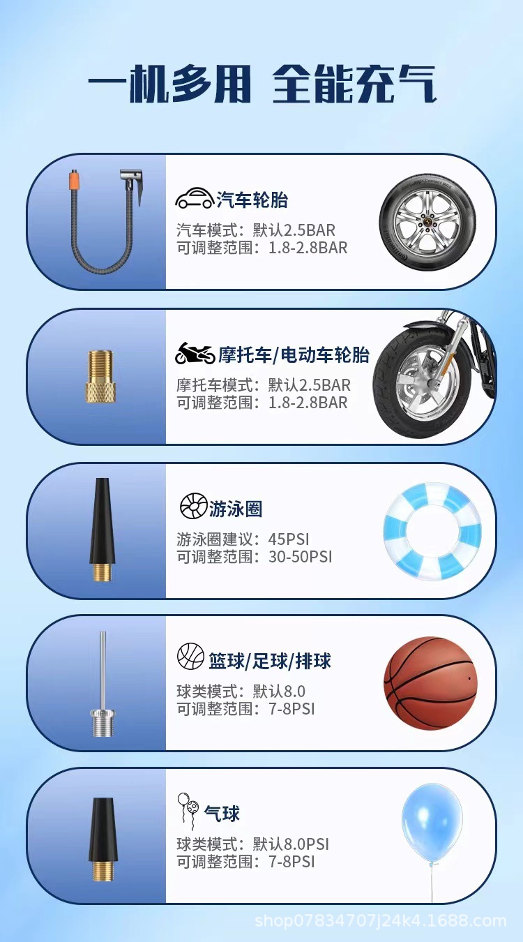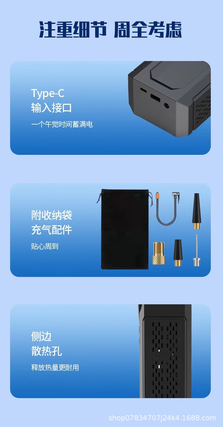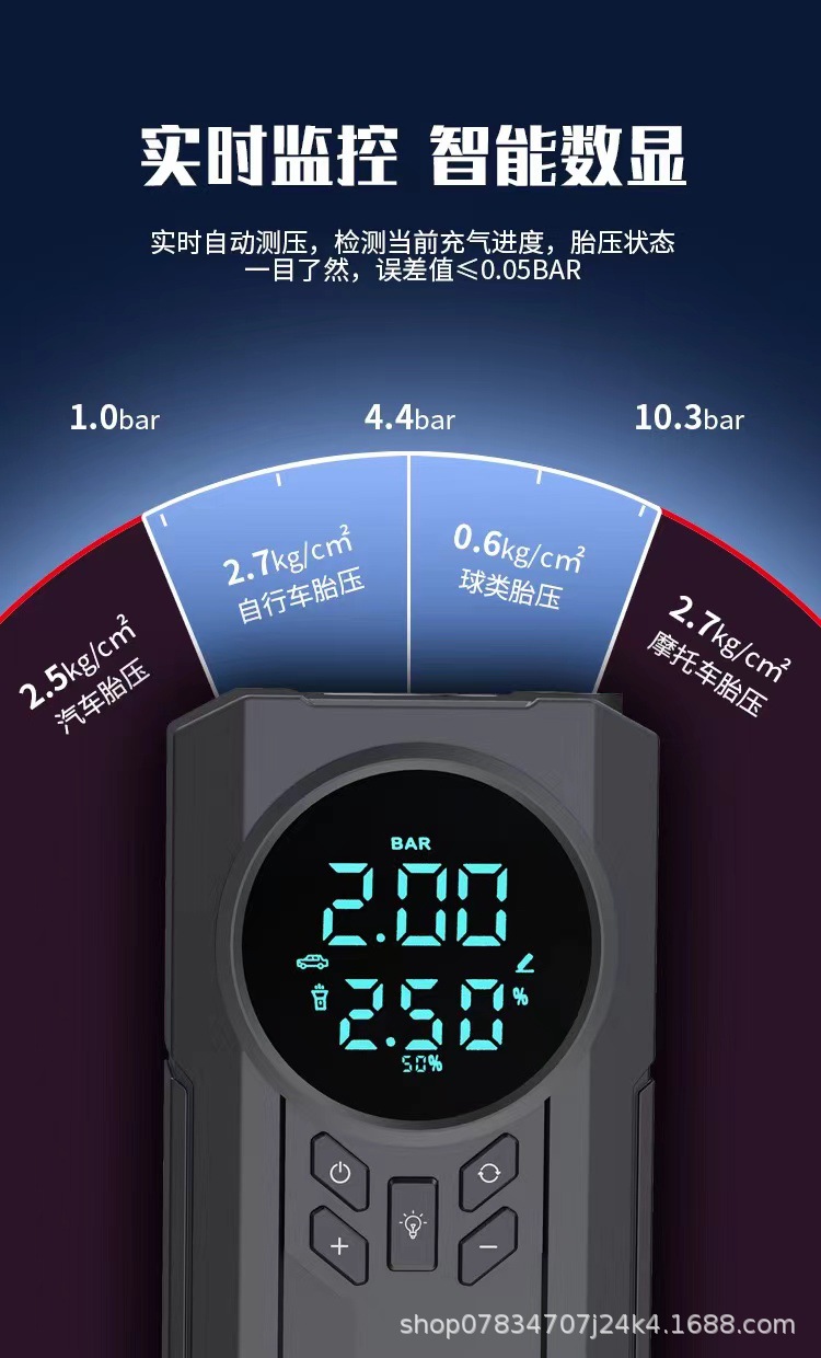 Автомобильный насос, беспроводной портативный компрессор для накачивания шин электромобилей и мотоциклов, быстрое накачивание