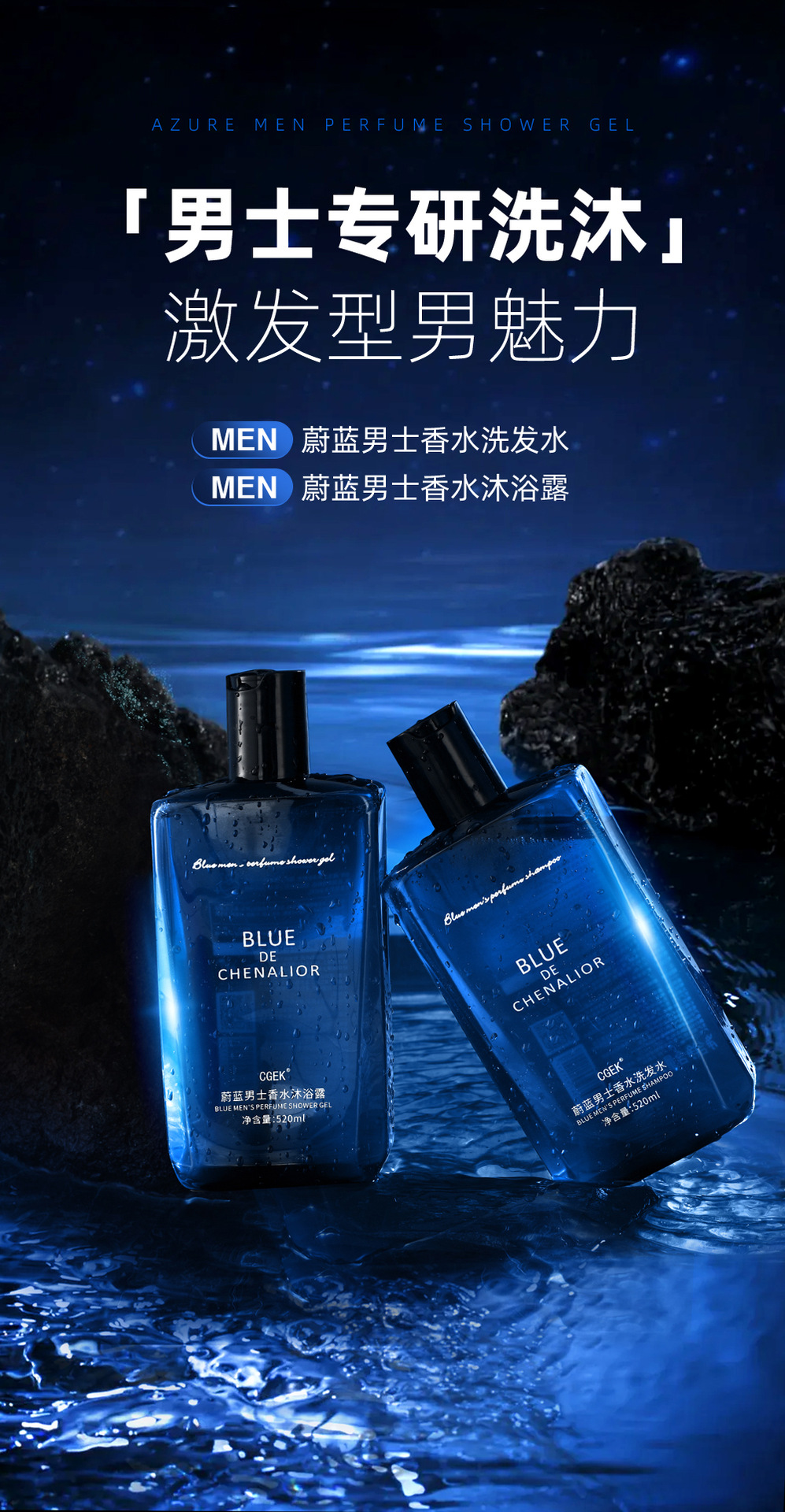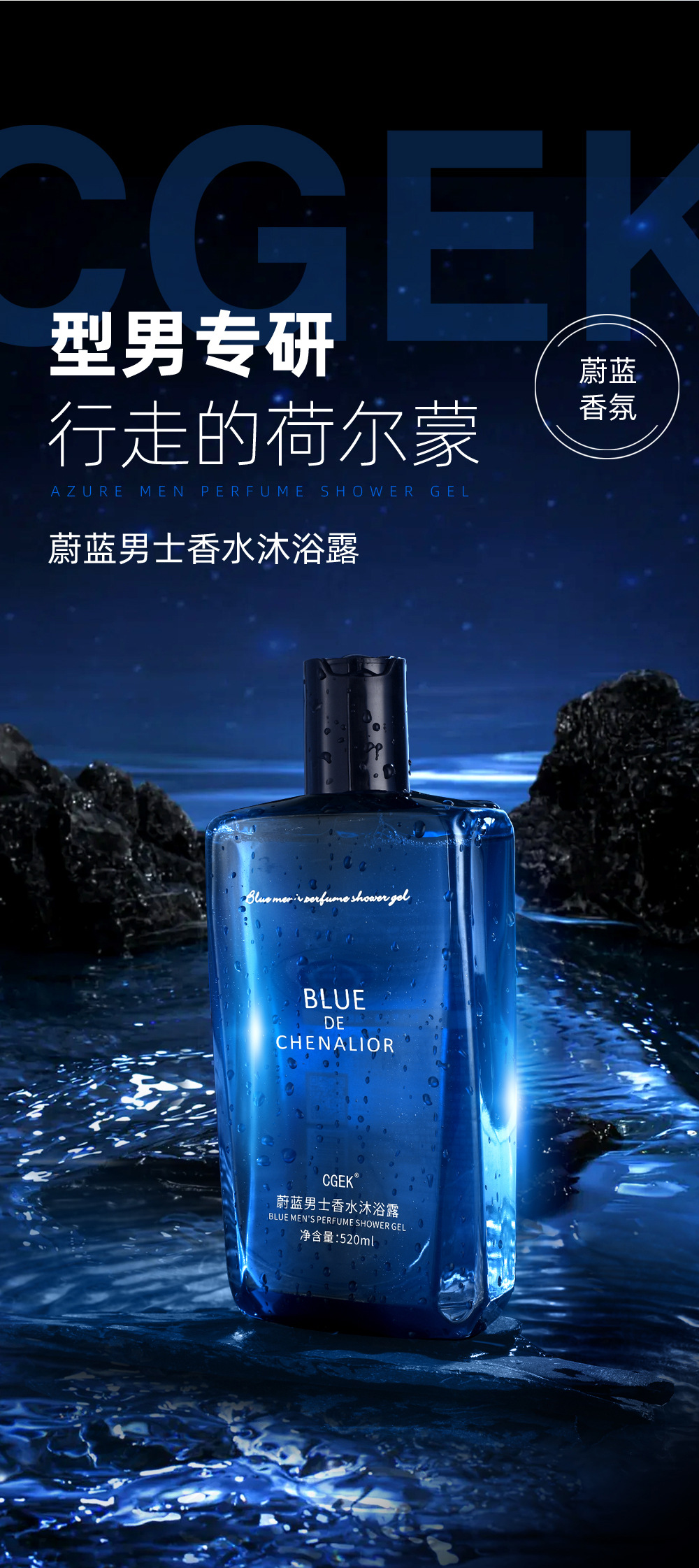 CGEK Azure Мужской парфюмерный гель для душа; CGEK Синий мужской шампунь для духов