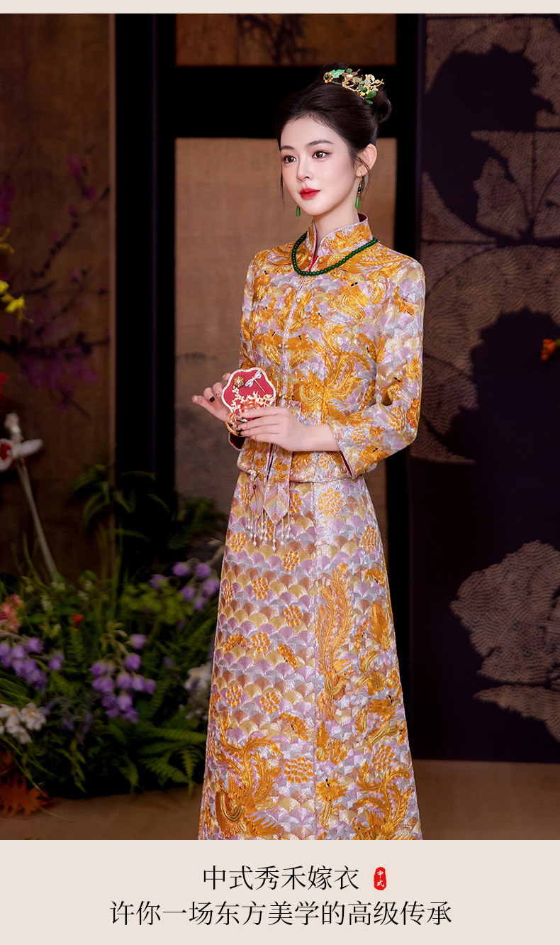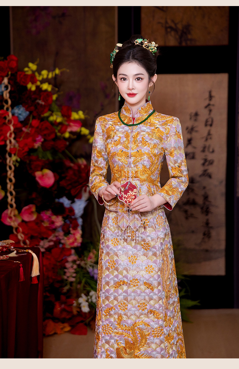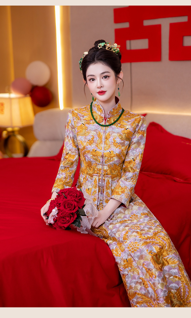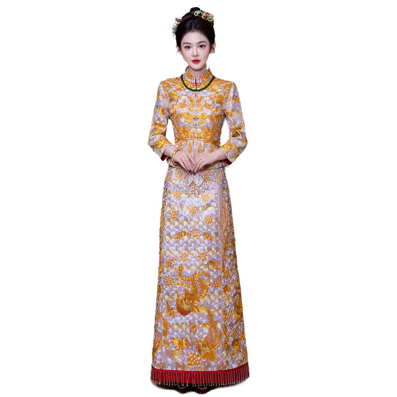 Платье с полной вышивкой Дракона и Феникса, золотой костюм Сюхэ для невесты, новое свадебное платье для тостов в китайском стиле 2025 года, свадебное платье для женщин.