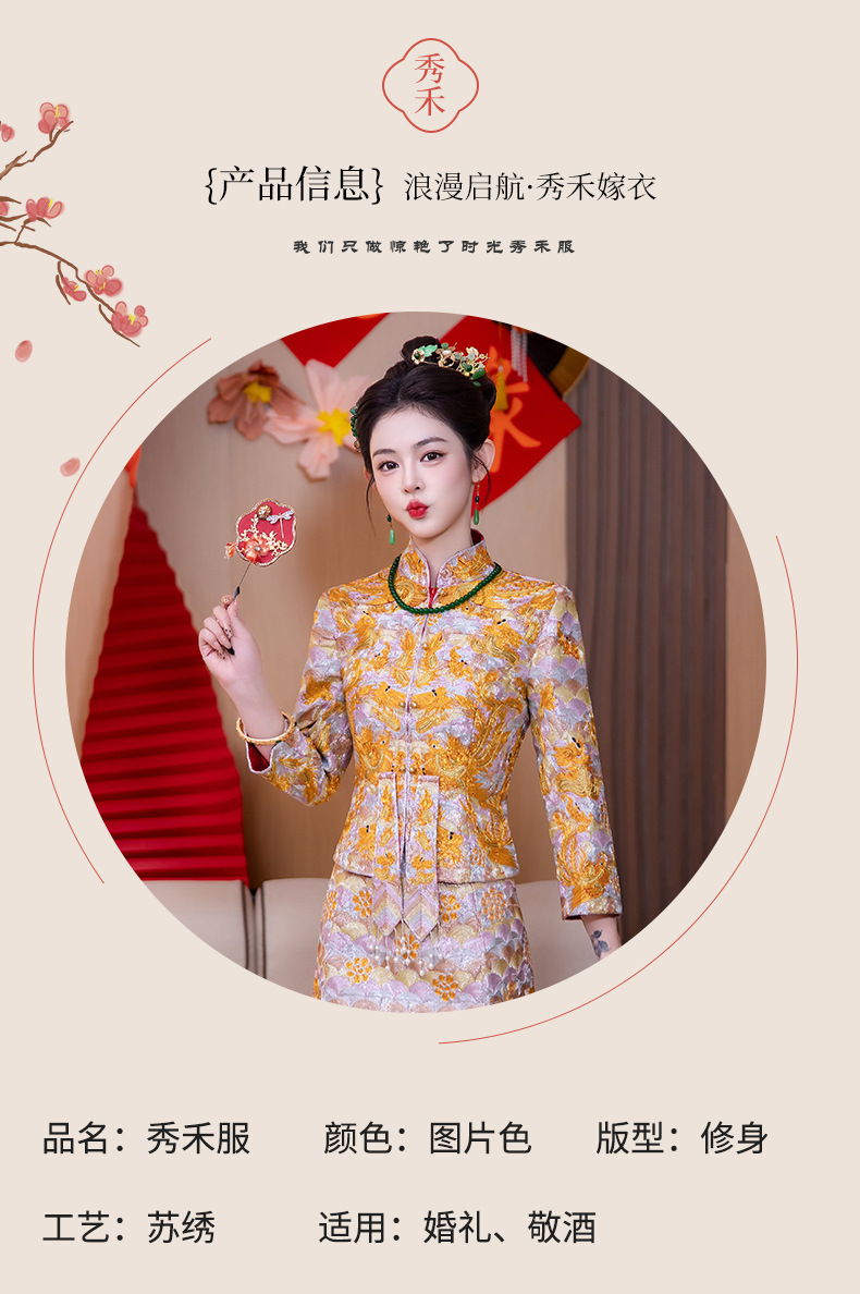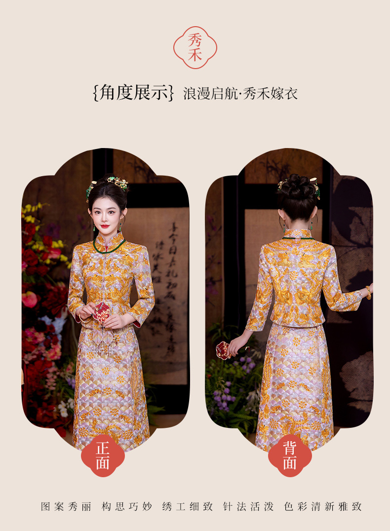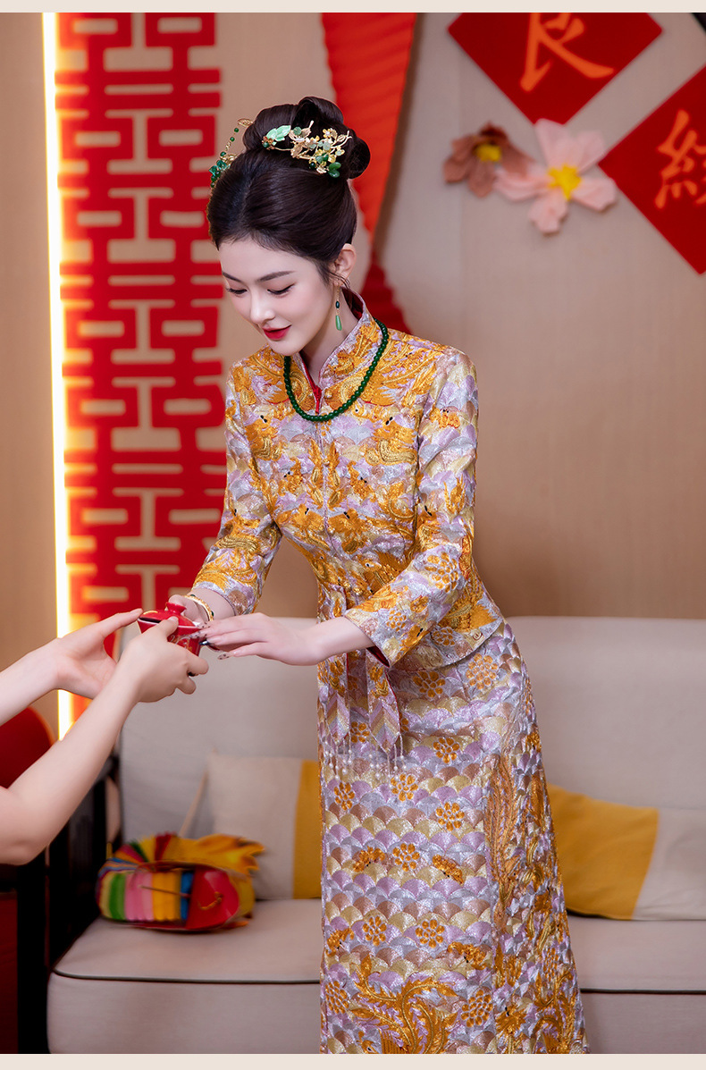 Платье с полной вышивкой Дракона и Феникса, золотой костюм Сюхэ для невесты, новое свадебное платье для тостов в китайском стиле 2025 года, свадебное платье для женщин.