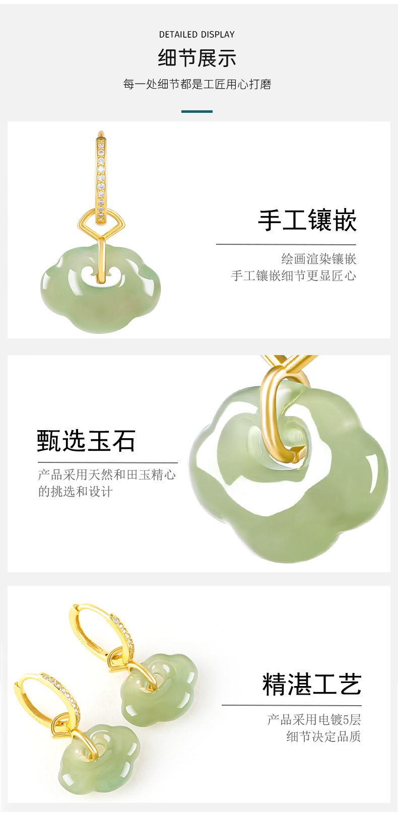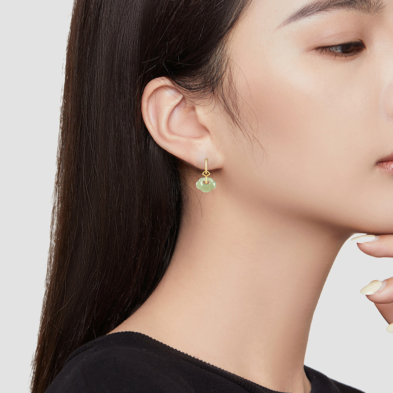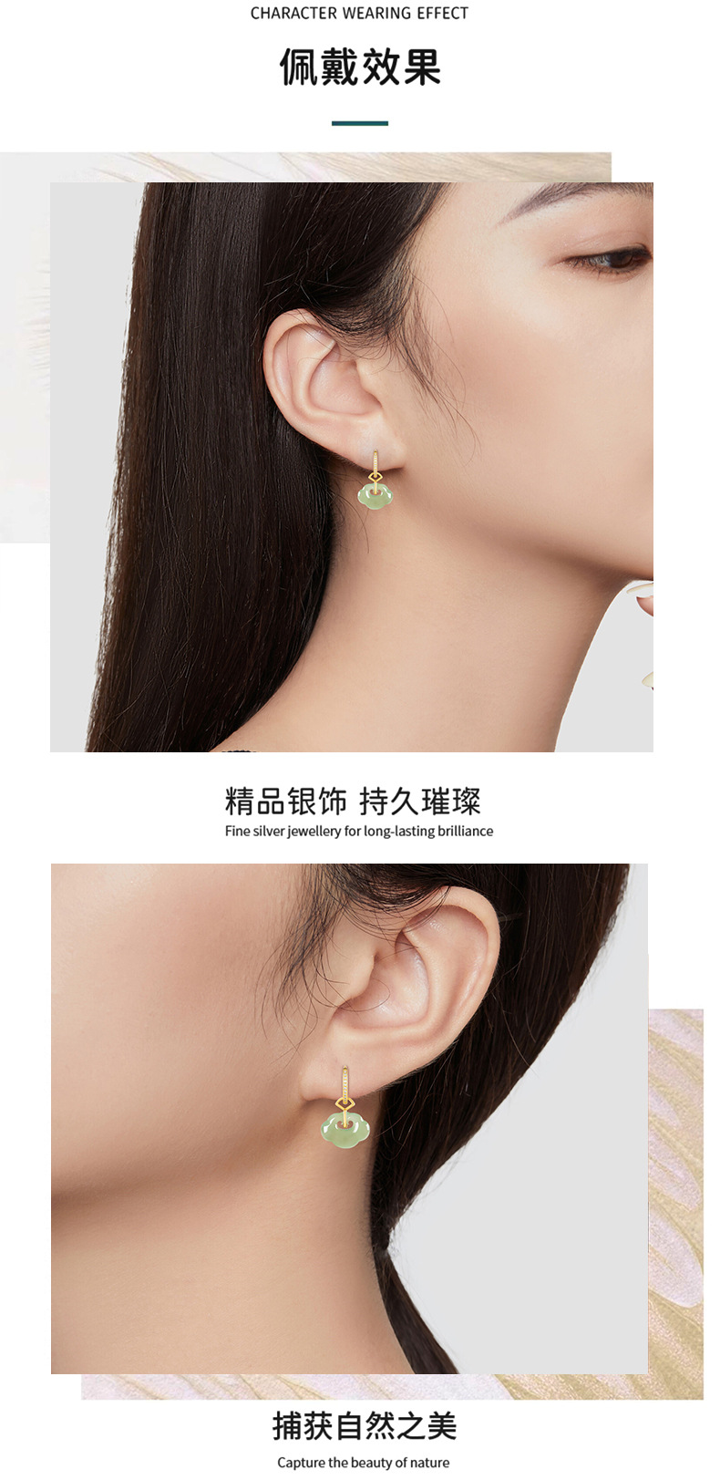 Подлинный S925 серебряный инкрустированный натуральный хетиан нефритовый нефрит руи нефритовый серьги высокого уровня темперамент женские серьги-серьги новые