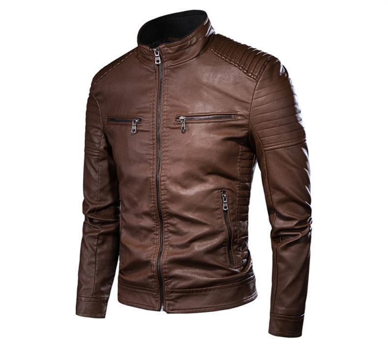 Тенденция кожаной одежды Кожаная одежда для мужчин новый осенний и зимний узкий топ для мужчин среднего возраста модная молодежная куртка воротник 2024