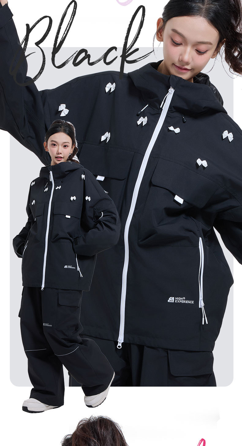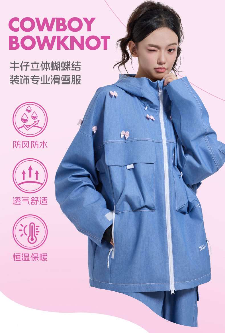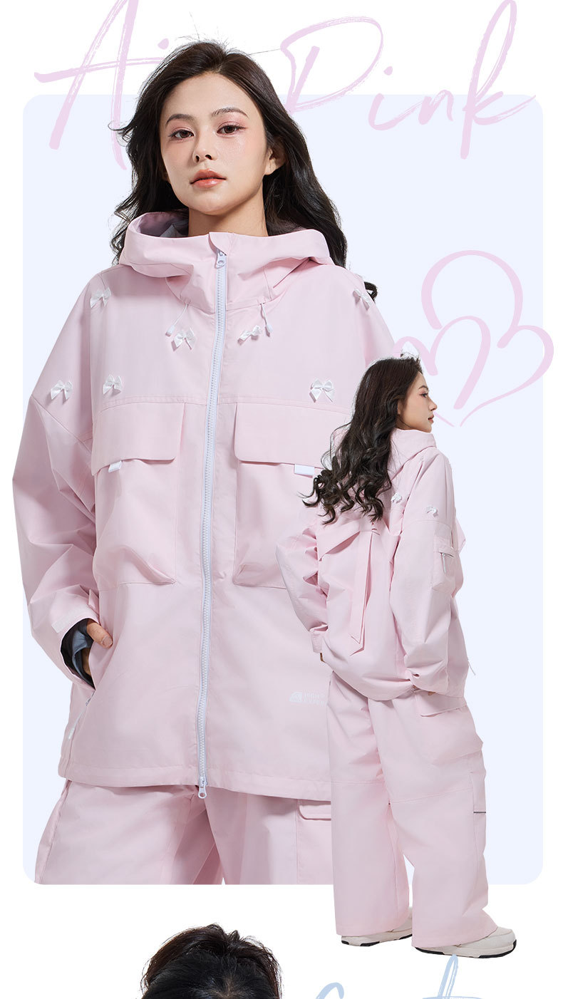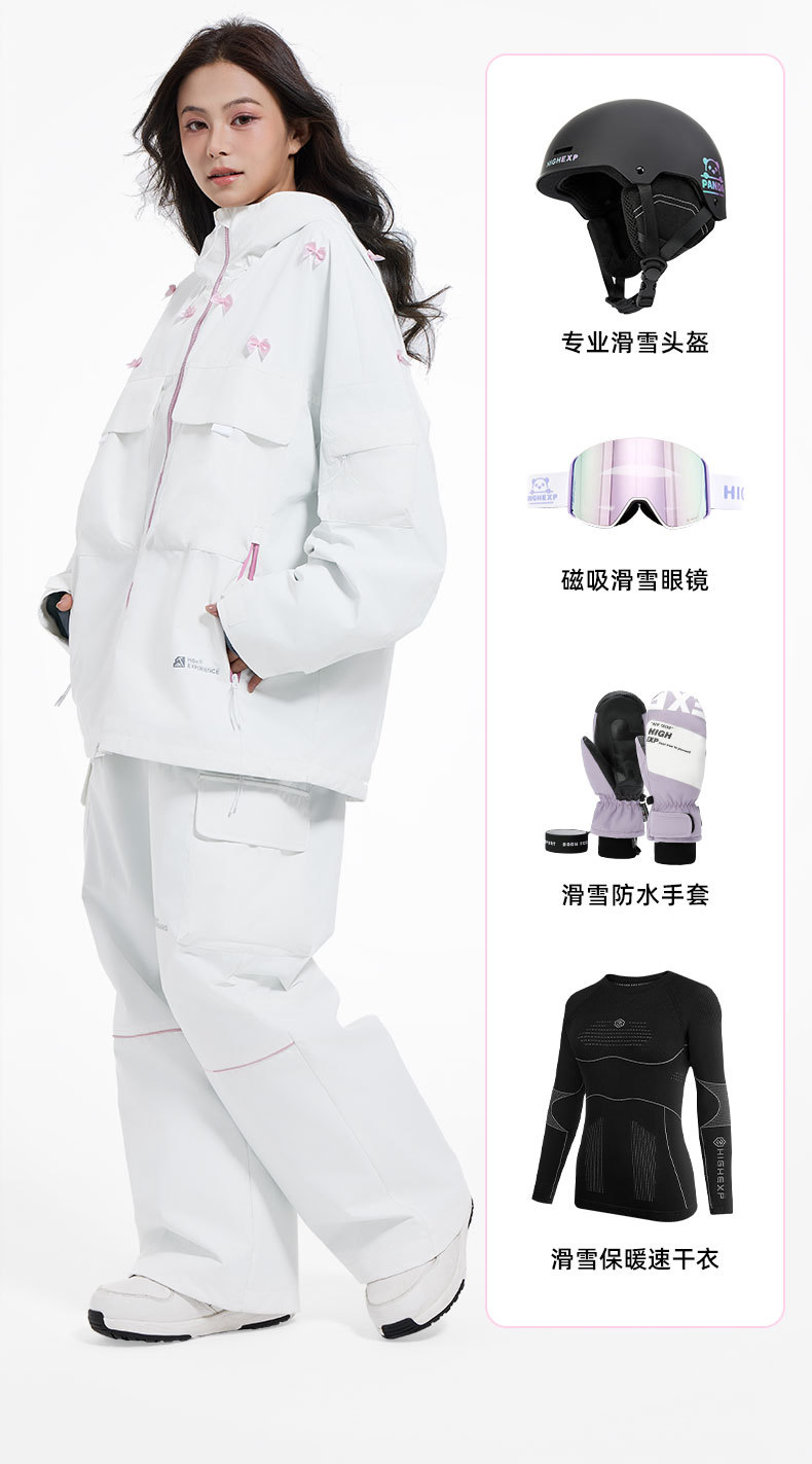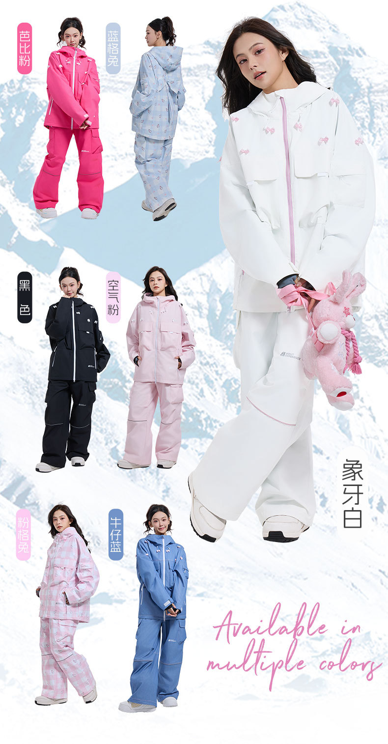 Новый продукт милый сладкий ветрозащитный водонепроницаемый лыжный пальто лыжный костюм женский шпон двойной доски бант износостойкий и теплый