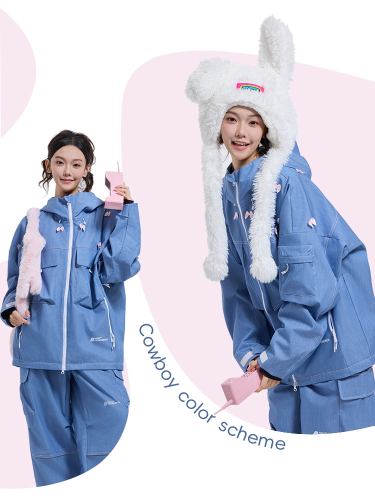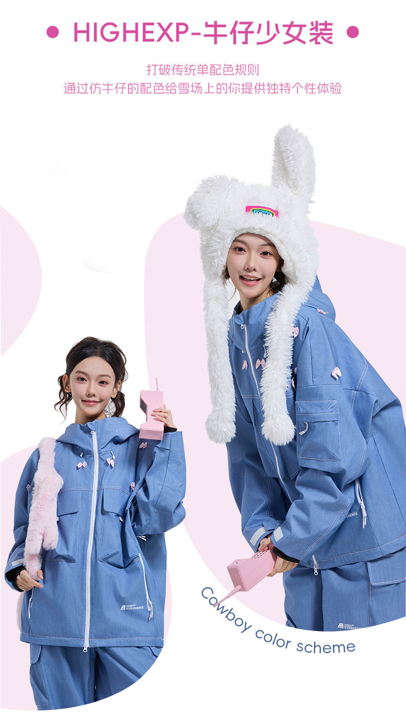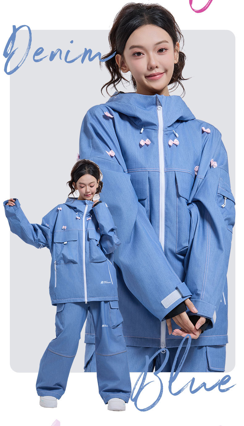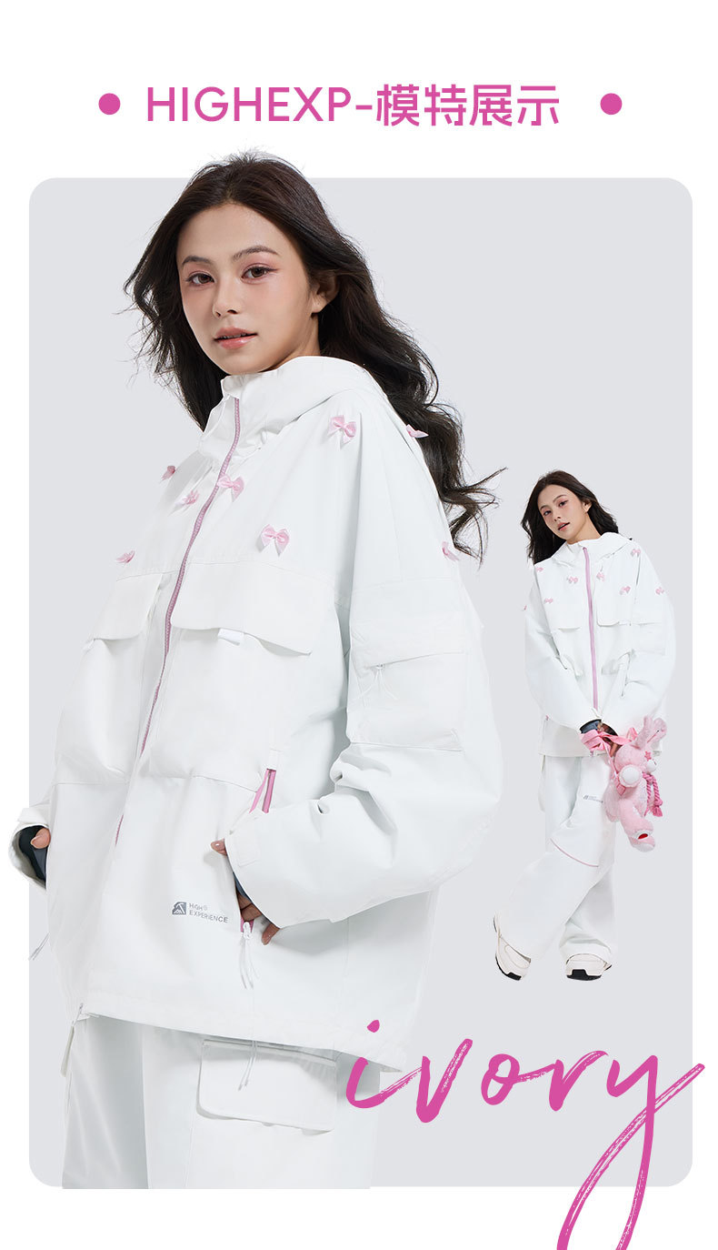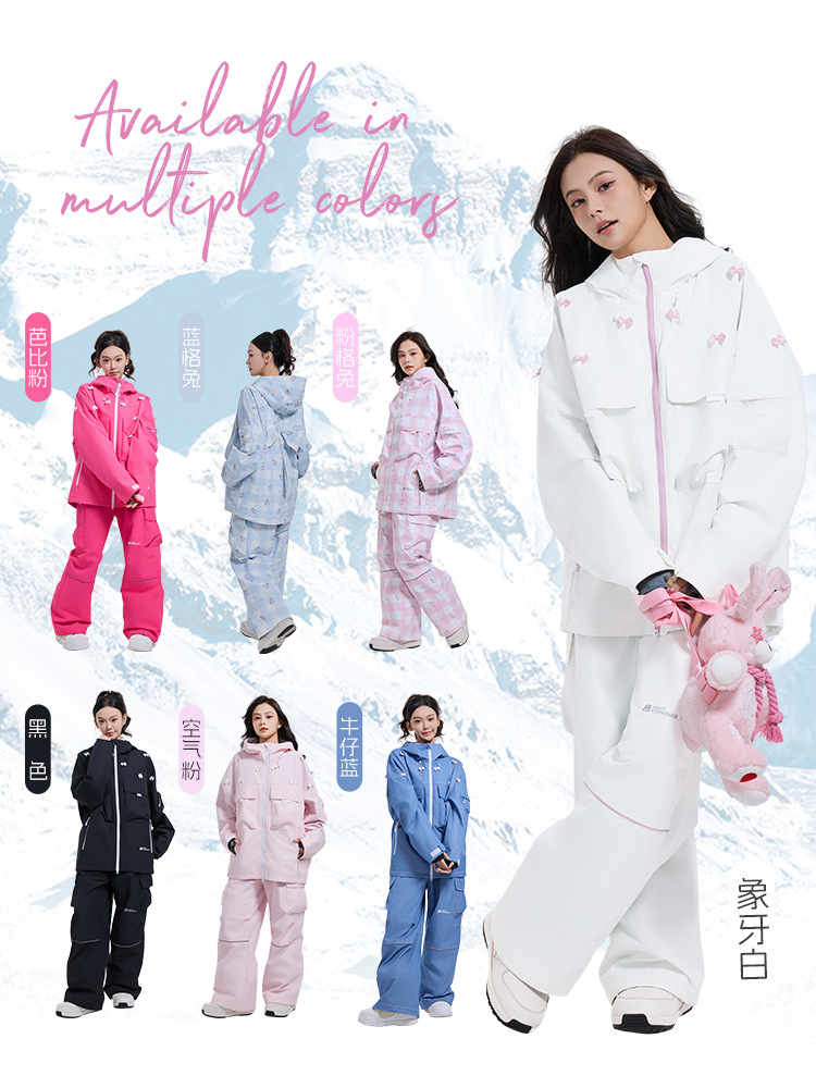 Новый продукт милый сладкий ветрозащитный водонепроницаемый лыжный пальто лыжный костюм женский шпон двойной доски бант износостойкий и теплый