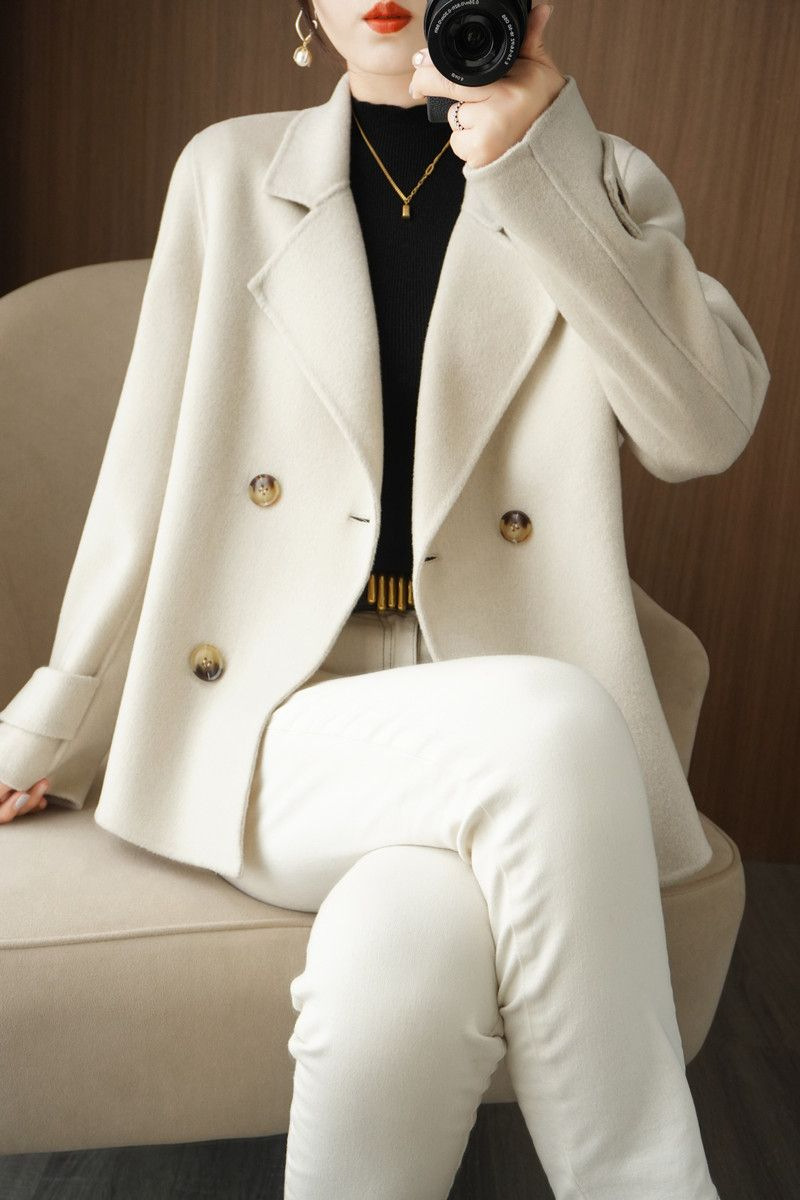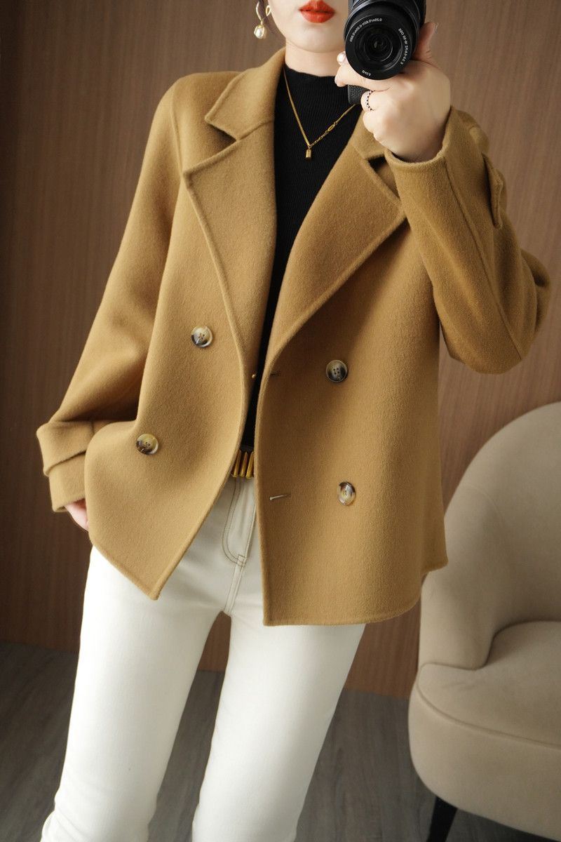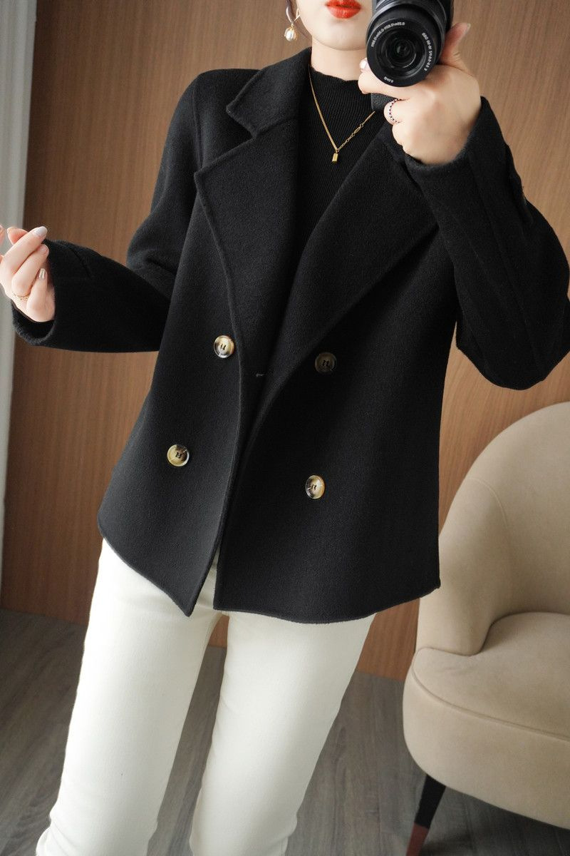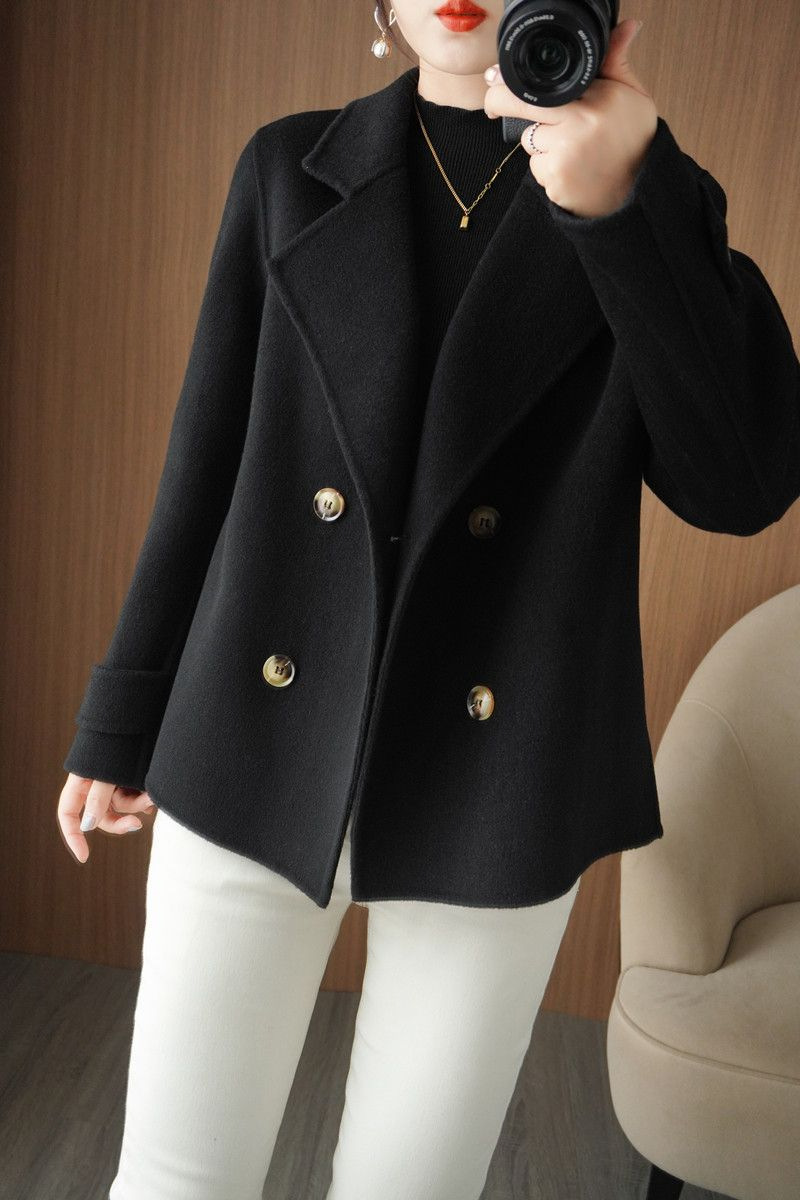 Осенний и зимний свободный шерстяной кардиган пальто с коротким костюмным воротником