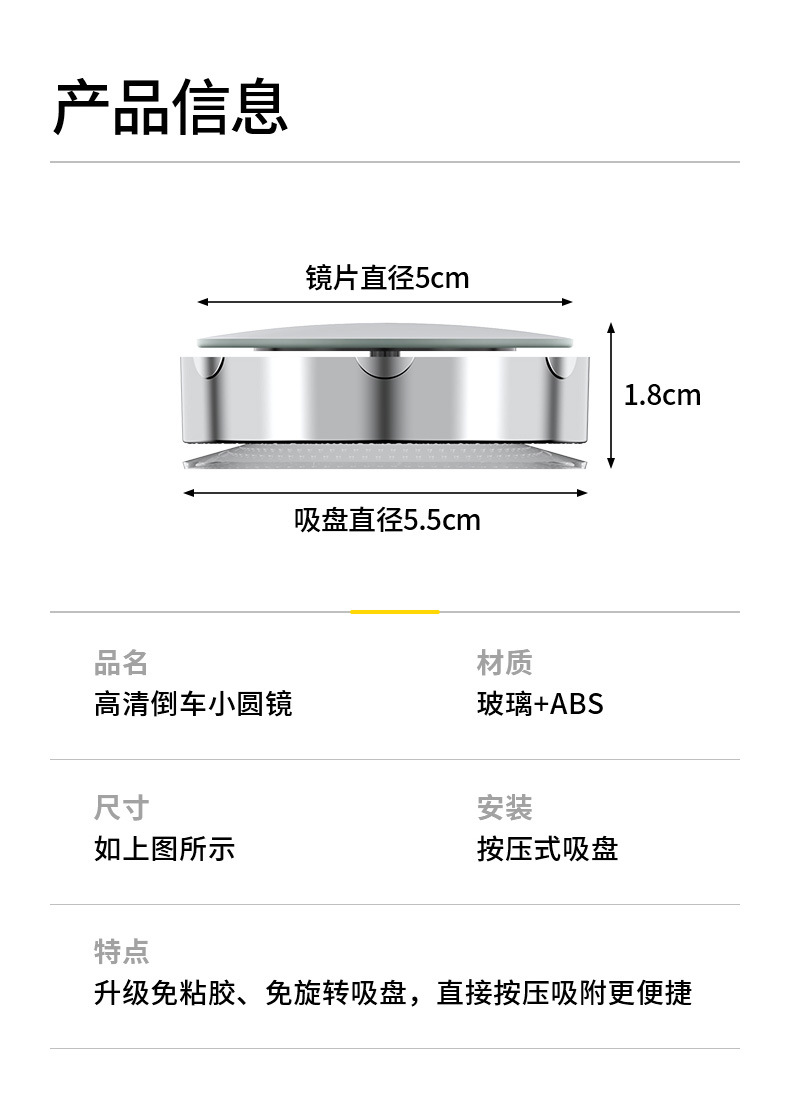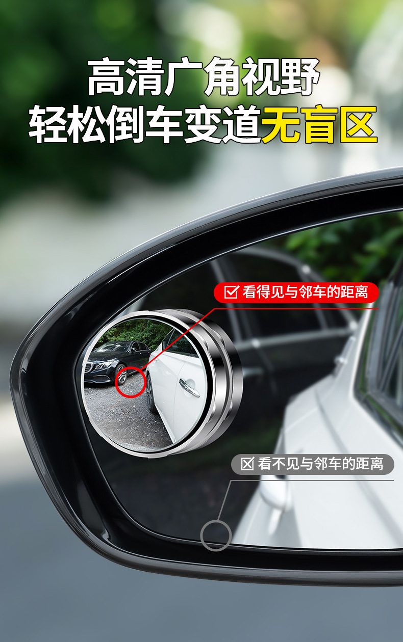 Зеркало заднего вида маленькое круглое зеркало заднего вида, вспомогательное зеркало для слепой зоны заднего вида, 360-градусное сверхпрозрачное присоска, панорамное зеркало заднего вида