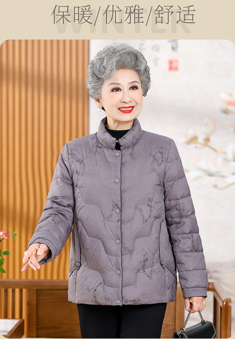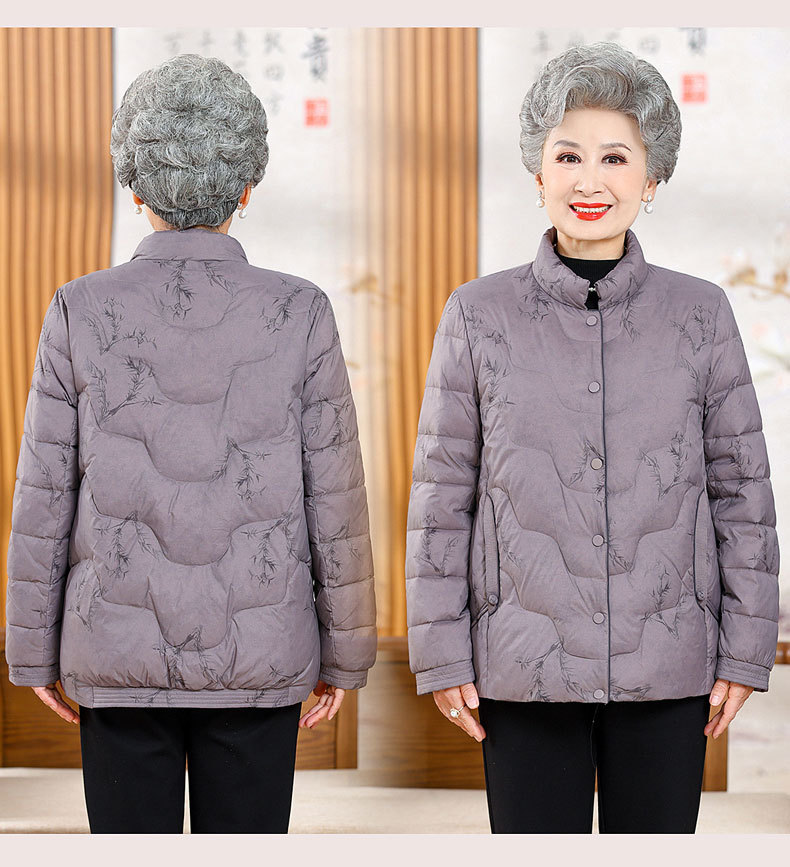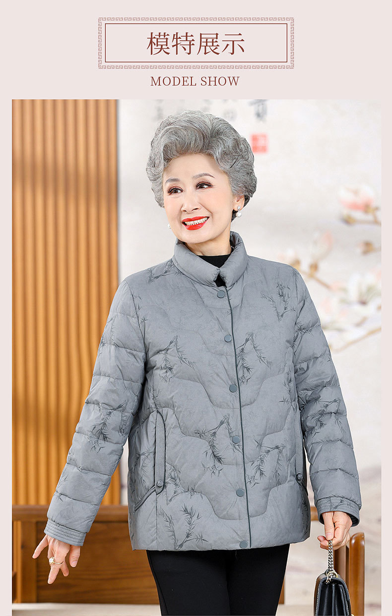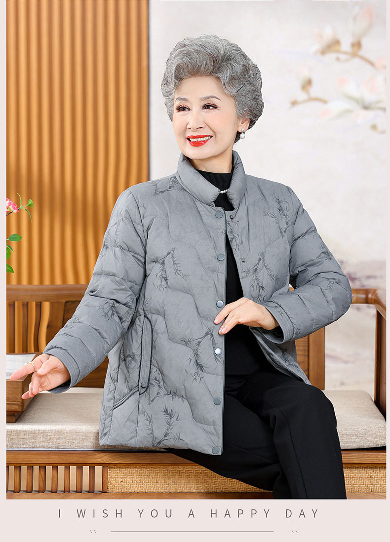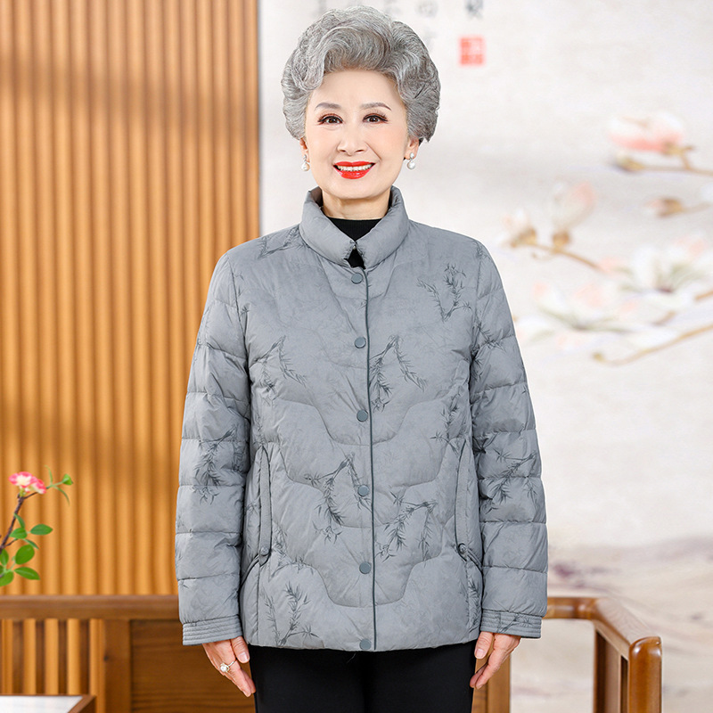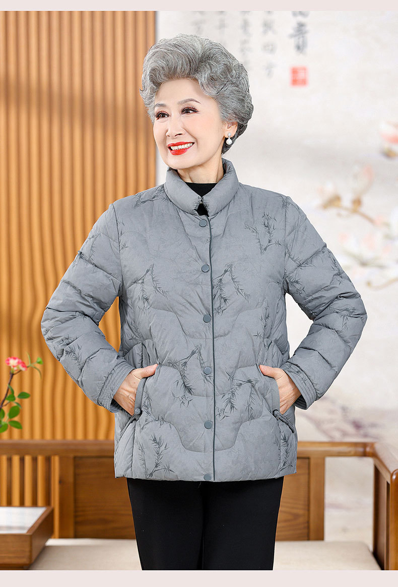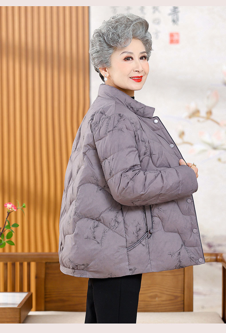 Новый 90 белый утка пуховик среднего и пожилого возраста короткий топ хлопчатобумажный костюм бабушки с иностранным принтом мама пальто зимняя одежда