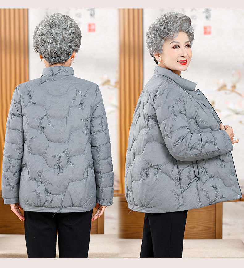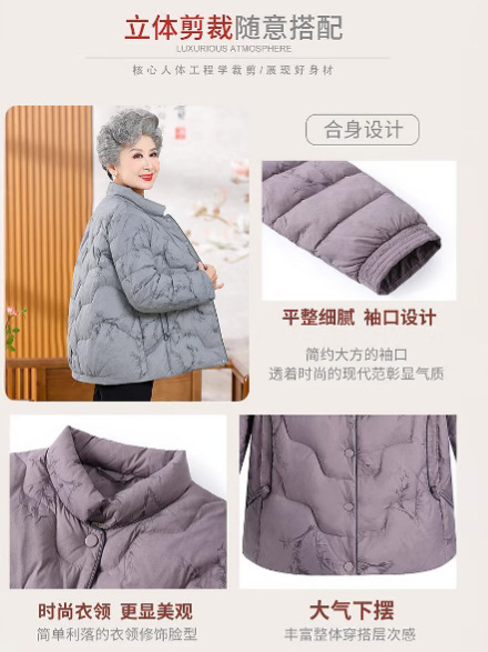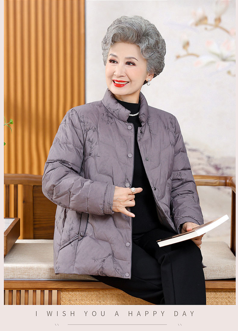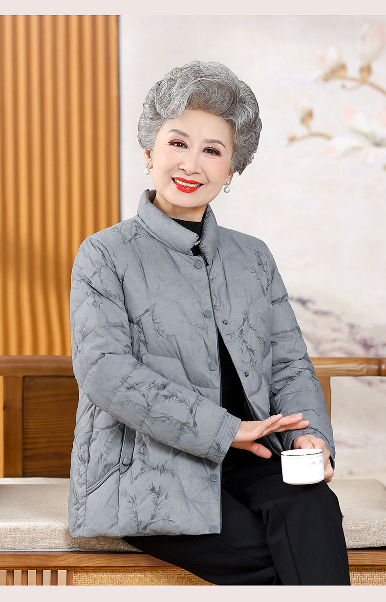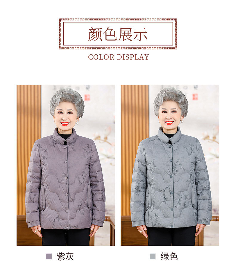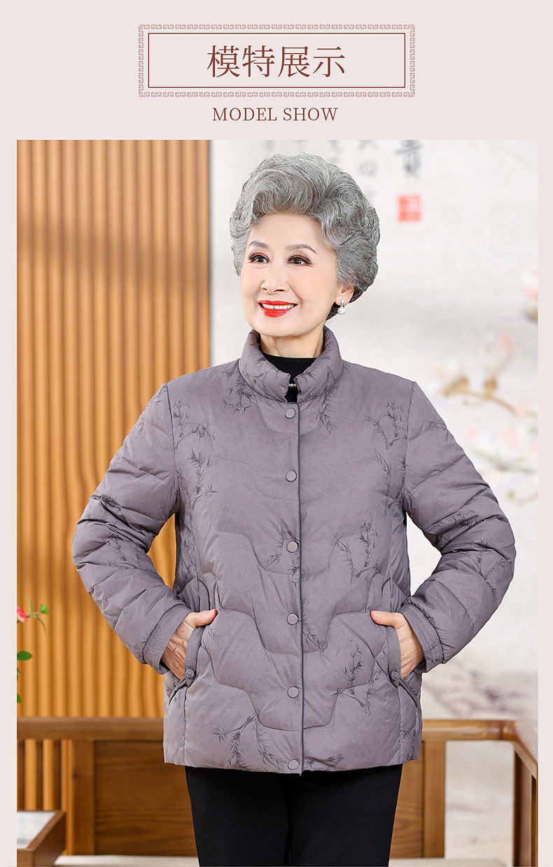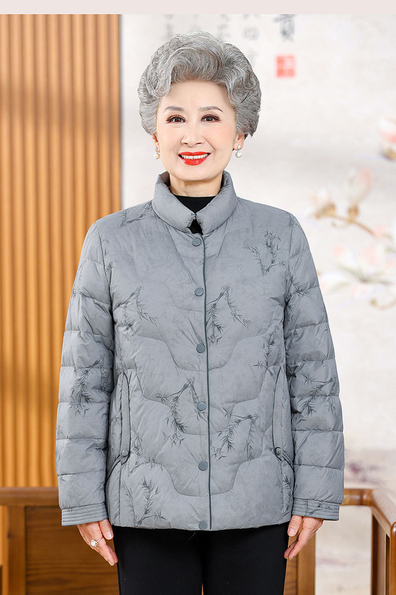 Новый 90 белый утка пуховик среднего и пожилого возраста короткий топ хлопчатобумажный костюм бабушки с иностранным принтом мама пальто зимняя одежда