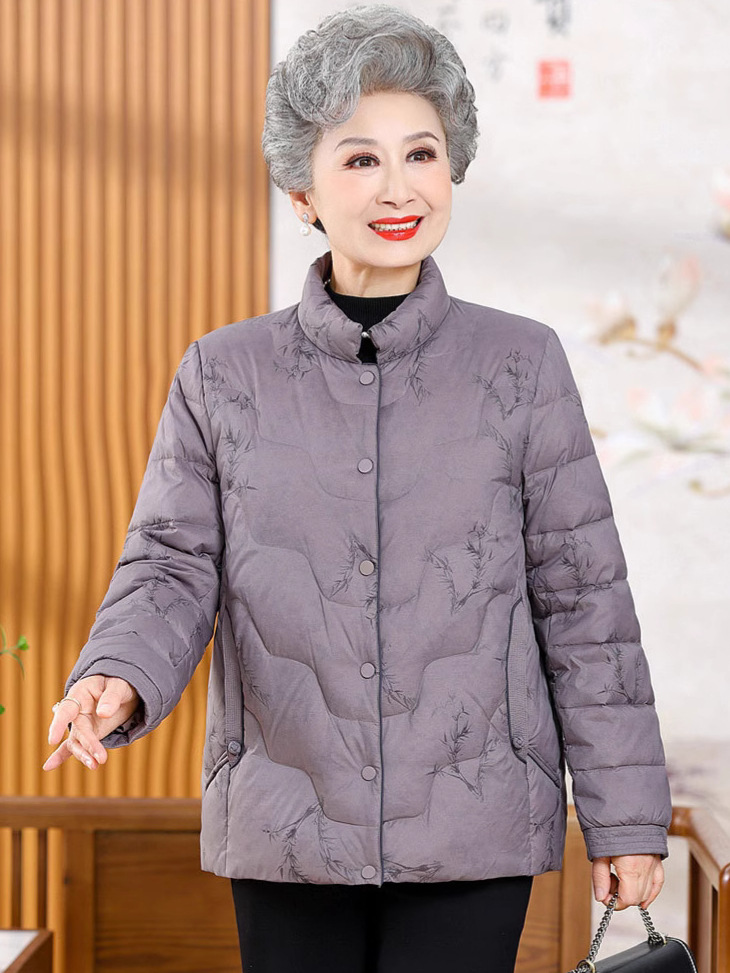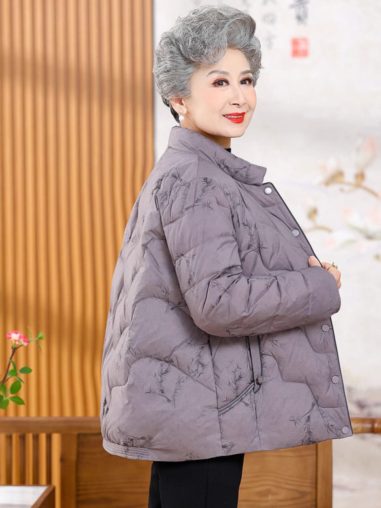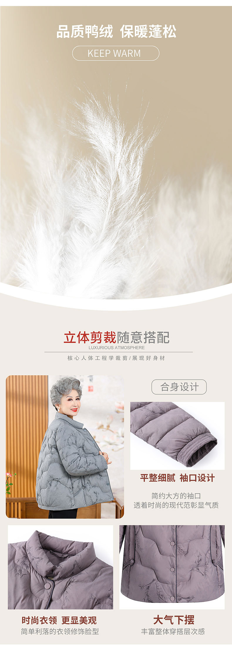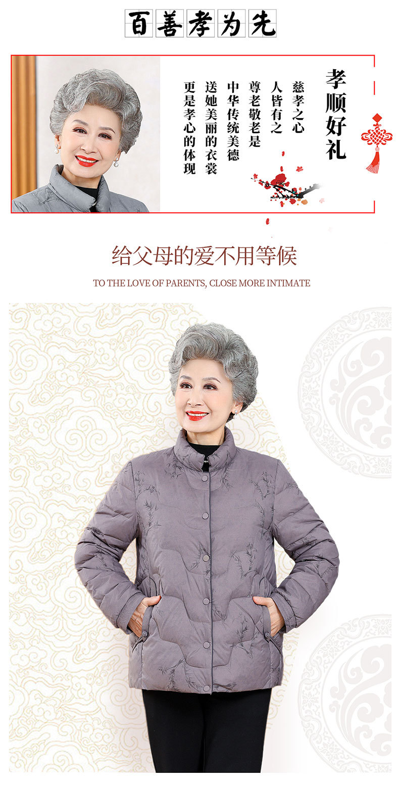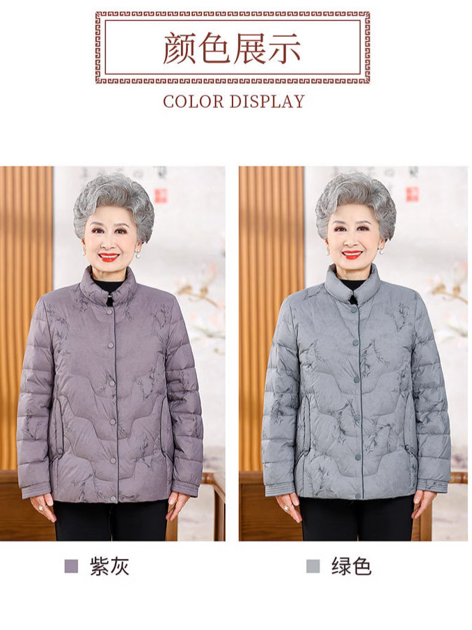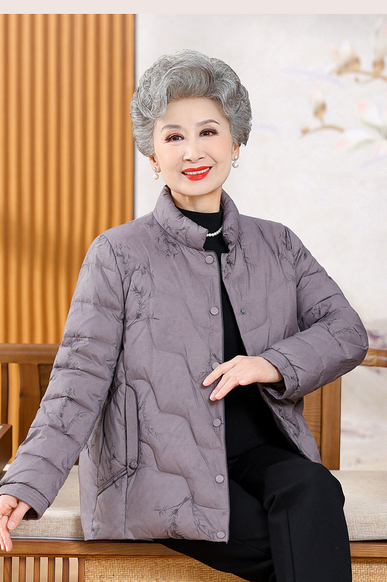 Новый 90 белый утка пуховик среднего и пожилого возраста короткий топ хлопчатобумажный костюм бабушки с иностранным принтом мама пальто зимняя одежда
