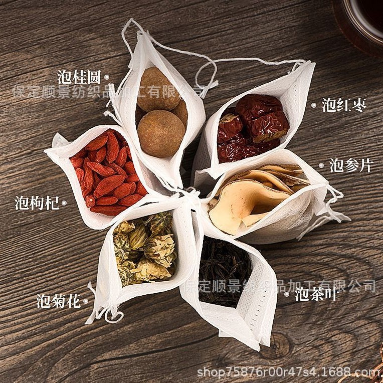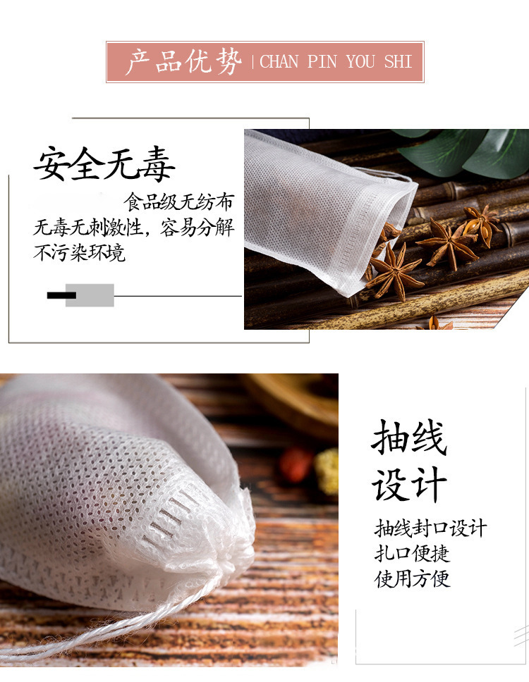 Полный размер 100 шт, чтобы вытащить линию, чтобы вымочить чайные пакетики, мешки для отвара китайской медицины, нетканые приправы для супа, мешки для шлака