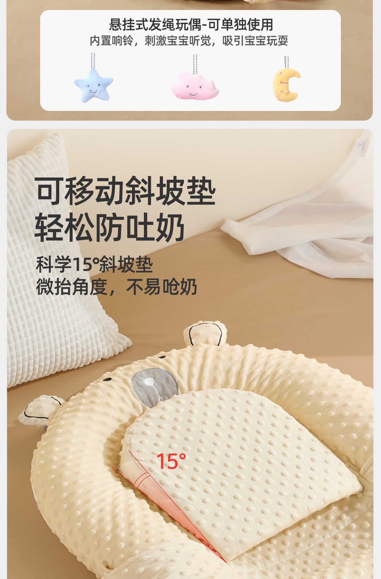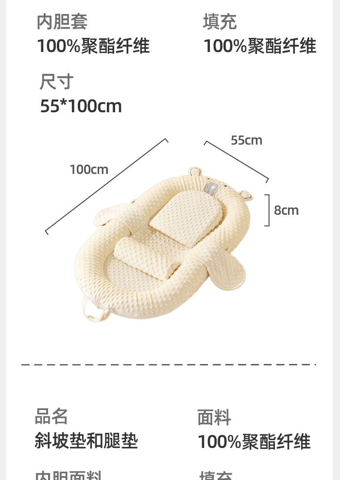 Матрас для детской кроватки с антипролежневым эффектом для новорожденных, складная наклонная конструкция для безопасного сна, успокаивающая наклонная подушка.