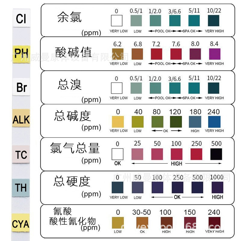 Прямые продажи с фабрики 7 в 1 плавательная тестовая бумага PH тест-полоска тест-полоска качества воды остаточный хлор PH тест-полоска