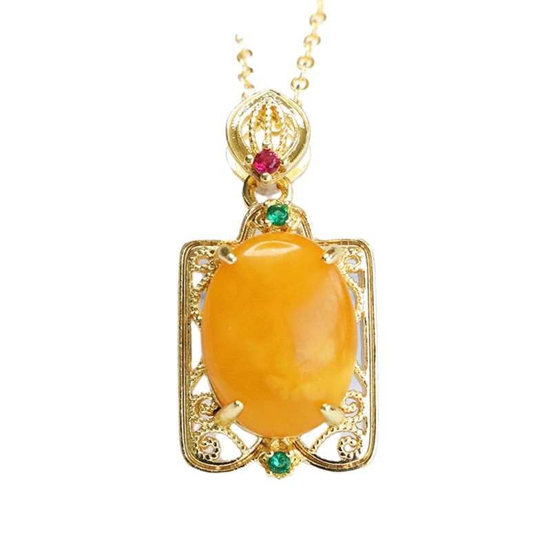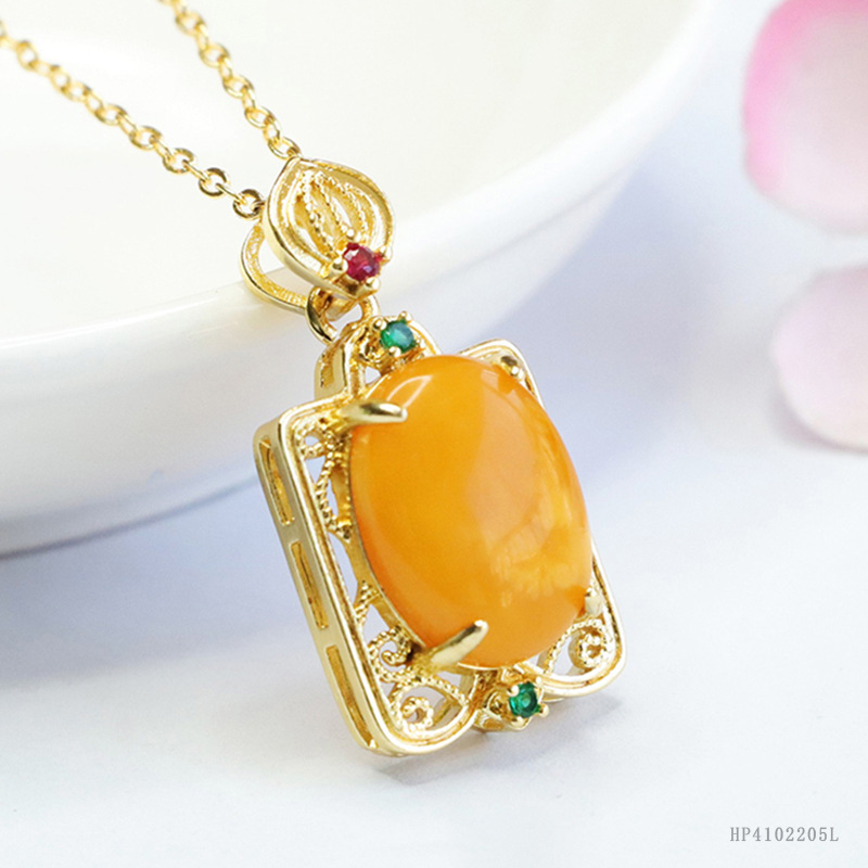 Подвеска из натурального янтаря Гуань Ю, цвет «куриное масло», желтый пчелиный воск, заготовка для ожерелья, оптовая продажа, дропшиппинг S4102205L