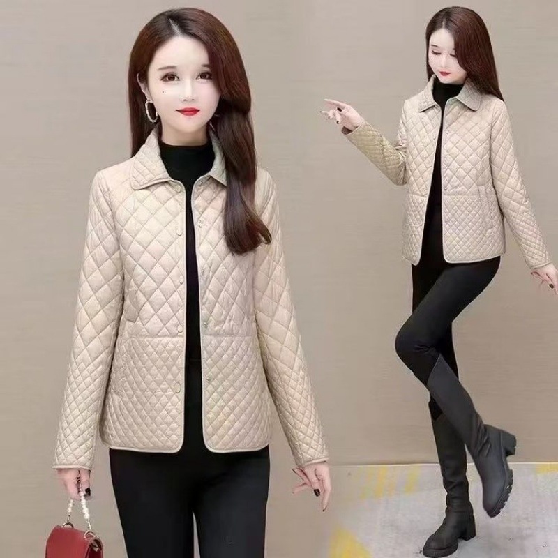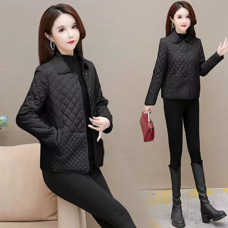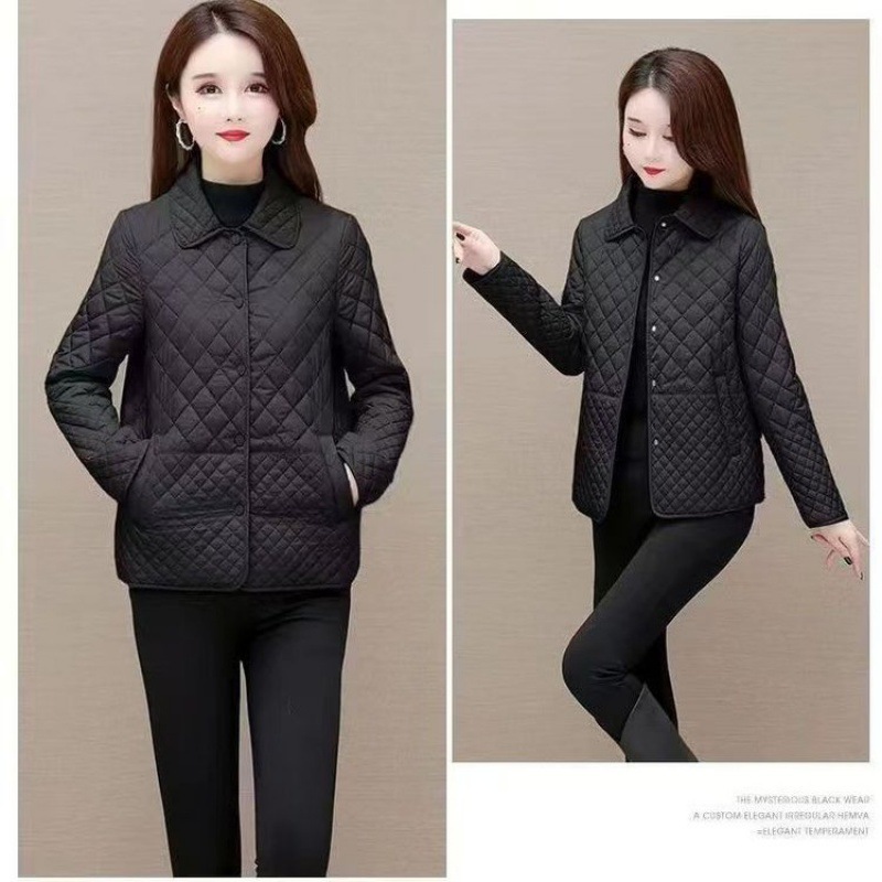 2024 ромбовидная клетчатая куртка хлопчатобумажная куртка женская осень-зима новая мама свободная повседневная легкая маленькая хлопчатобумажная куртка прилив