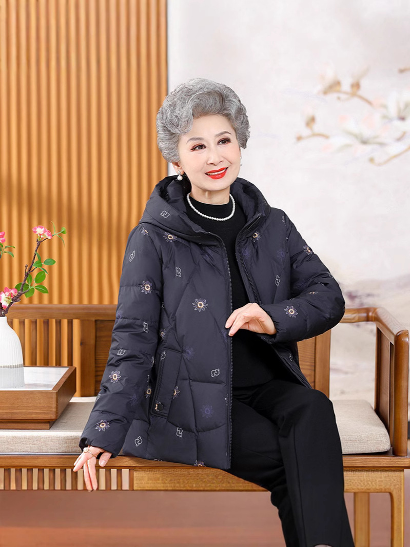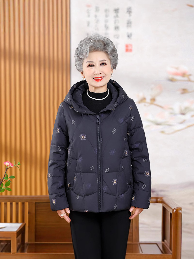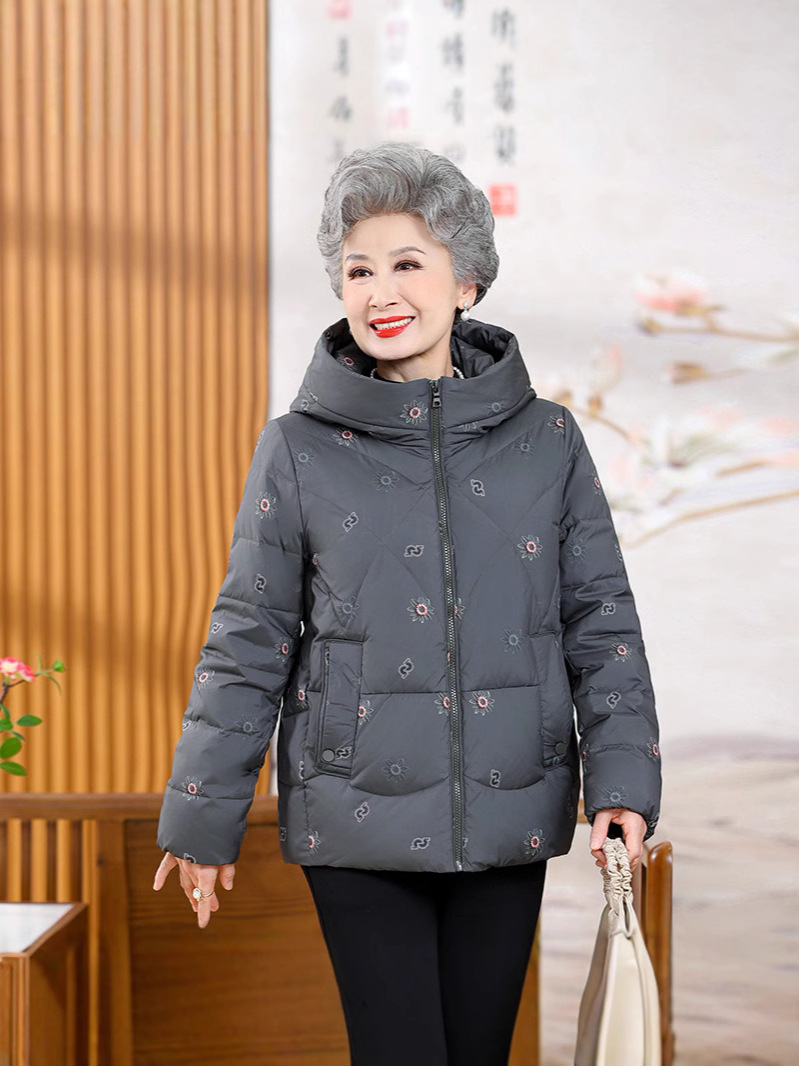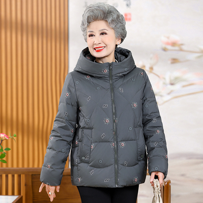 Среднего и пожилого возраста пуховик мама зимняя пожилая куртка хлопковая куртка иностранная бабушка пуховик топ короткий с капюшоном
