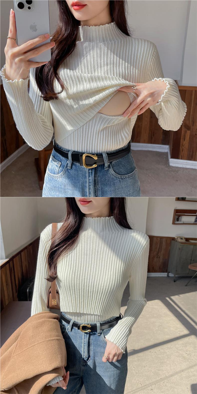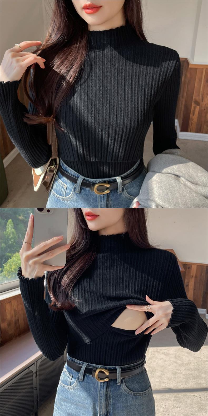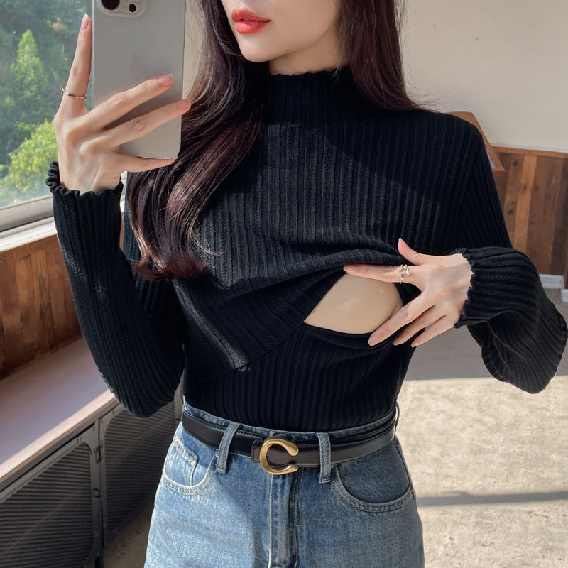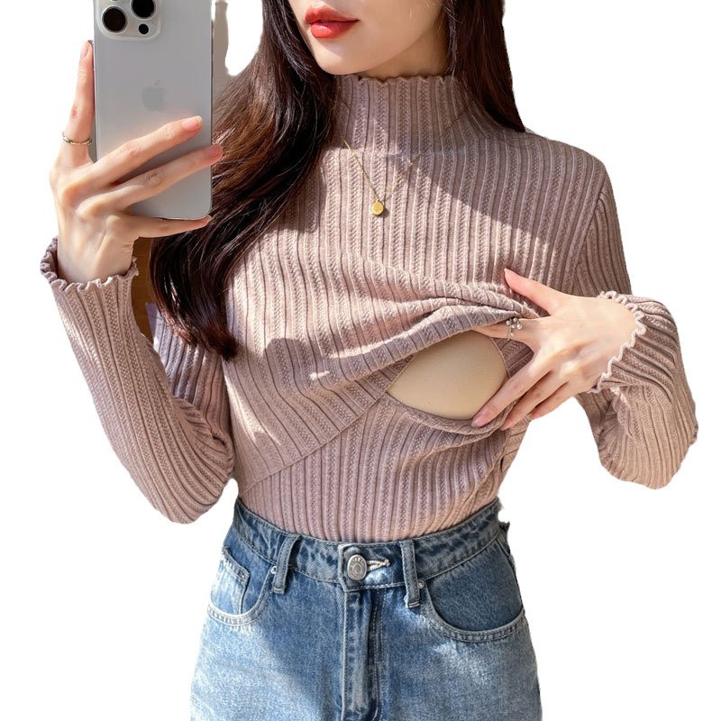 2024 Осень и зима утолщенные теплые кормящие свитера с полувысоким воротником