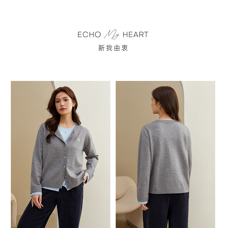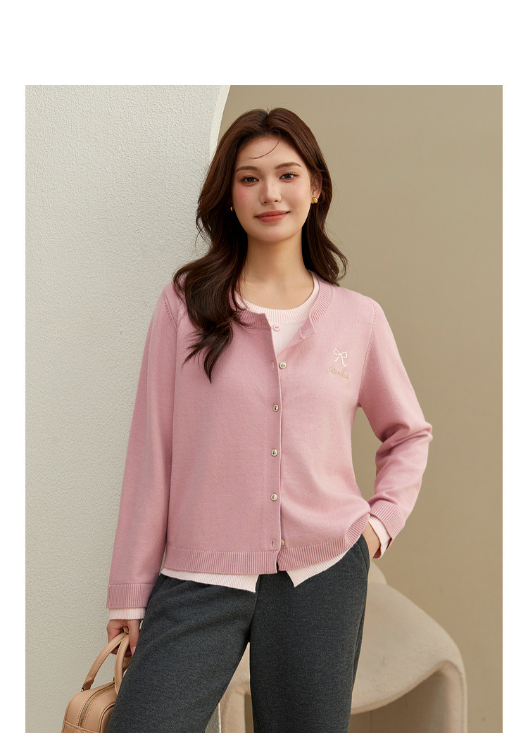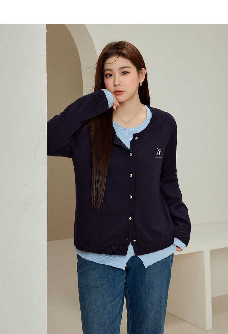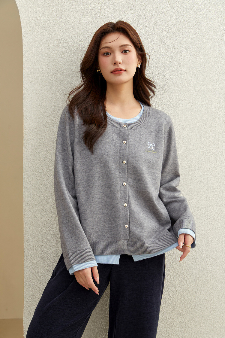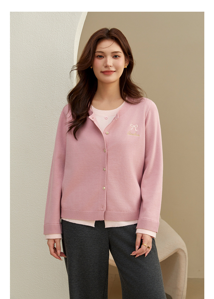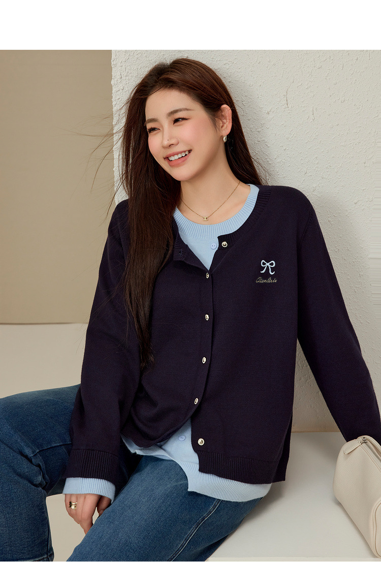Цветное шоу большого размера женская корейская нежная, простой с круглым вырезом, контрафактные два поддельных свитера жирный mm2024 зимний новый