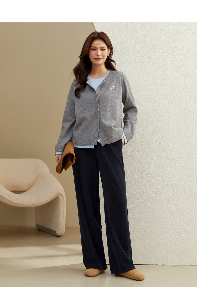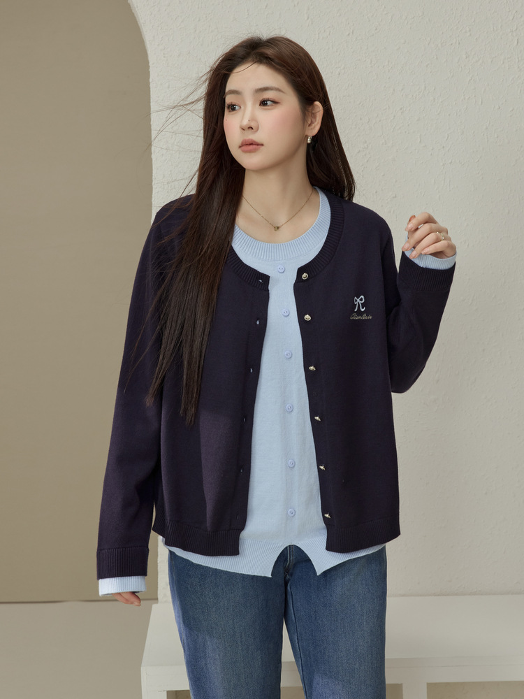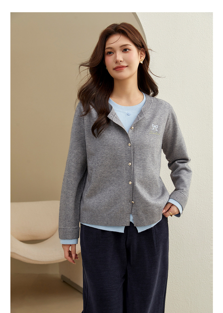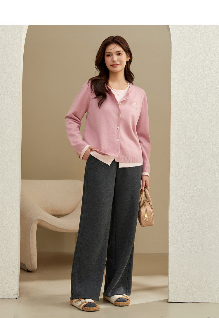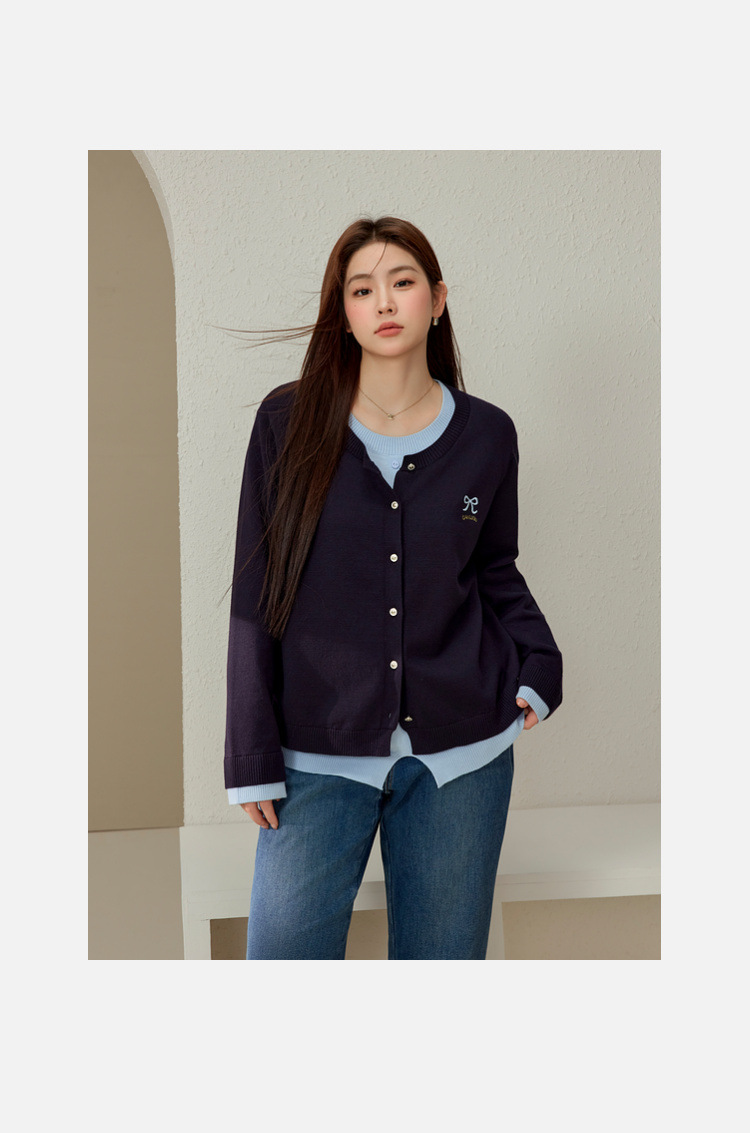 Цветное шоу большого размера женская корейская нежная, простой с круглым вырезом, контрафактные два поддельных свитера жирный mm2024 зимний новый
