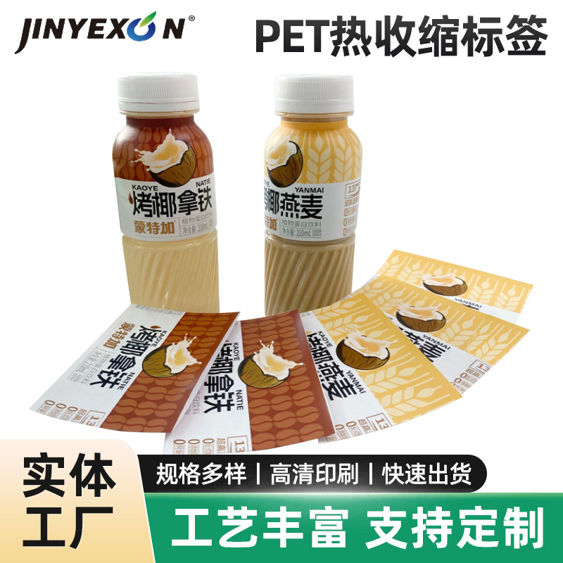 Производитель поставляет термоусадочные этикетки для животных с цветной печатью, этикетки для напитков из обжаренного кокосового молока, термоусадочная пленка, матовая розовая золотая.