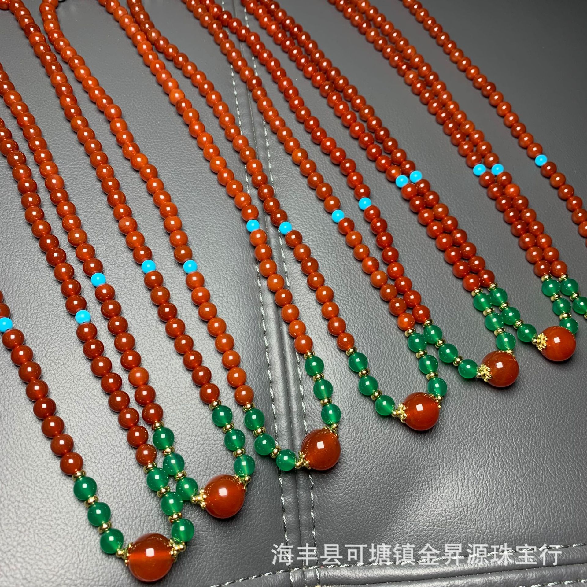 天然红玛瑙项链绿玛瑙玉髓圆珠南红吊坠女国潮首饰厂家批发直播款 批发量越大价格越低,可供直播间长期合作,欢迎来电私聊