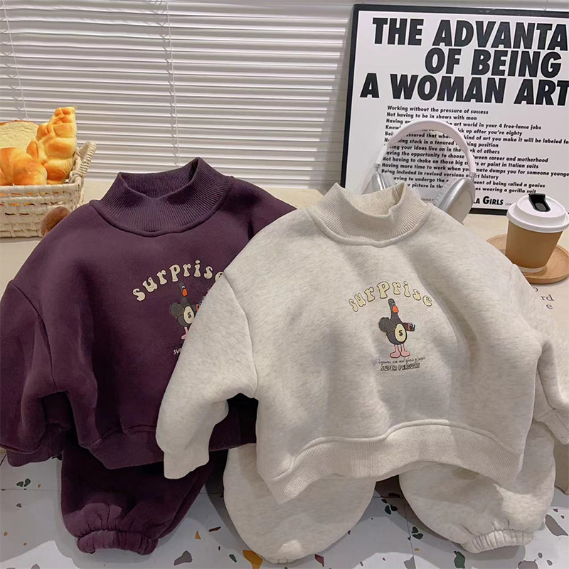 Зимний комплект из флисовой толстовки и брюк для детей 2025 года, теплый, хлопковый, в корейском стиле, повседневный, из двух предметов, для мальчиков и девочек