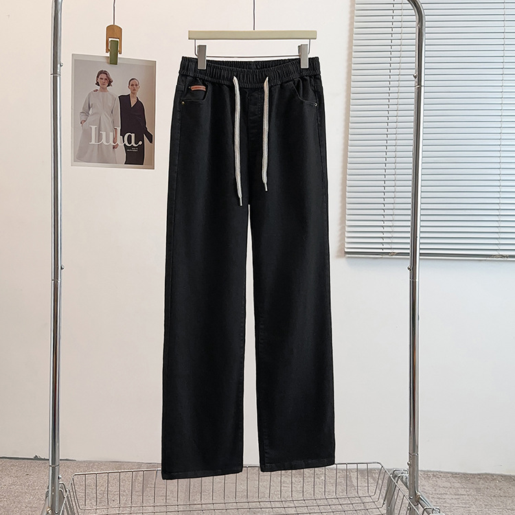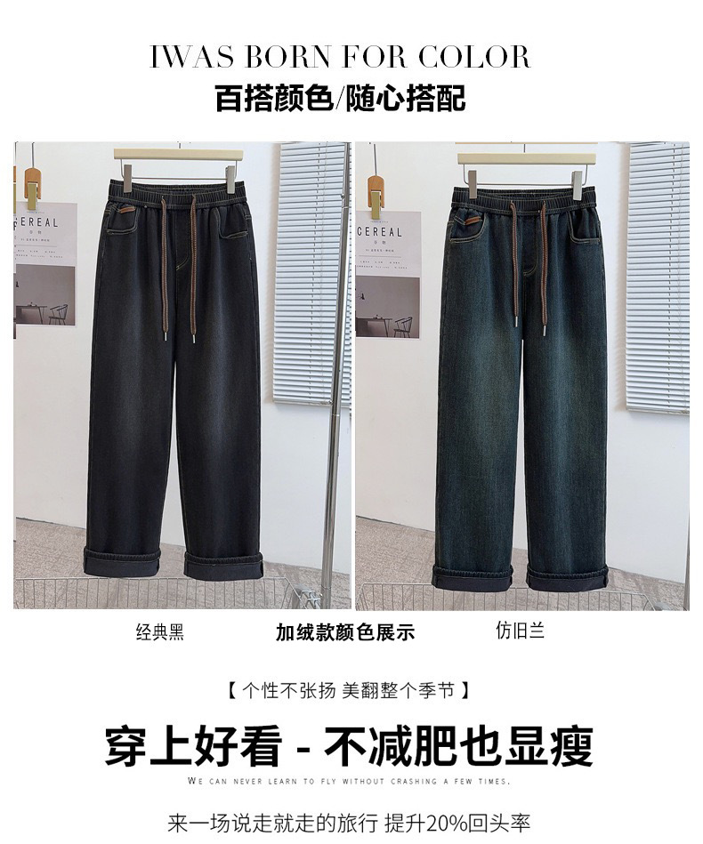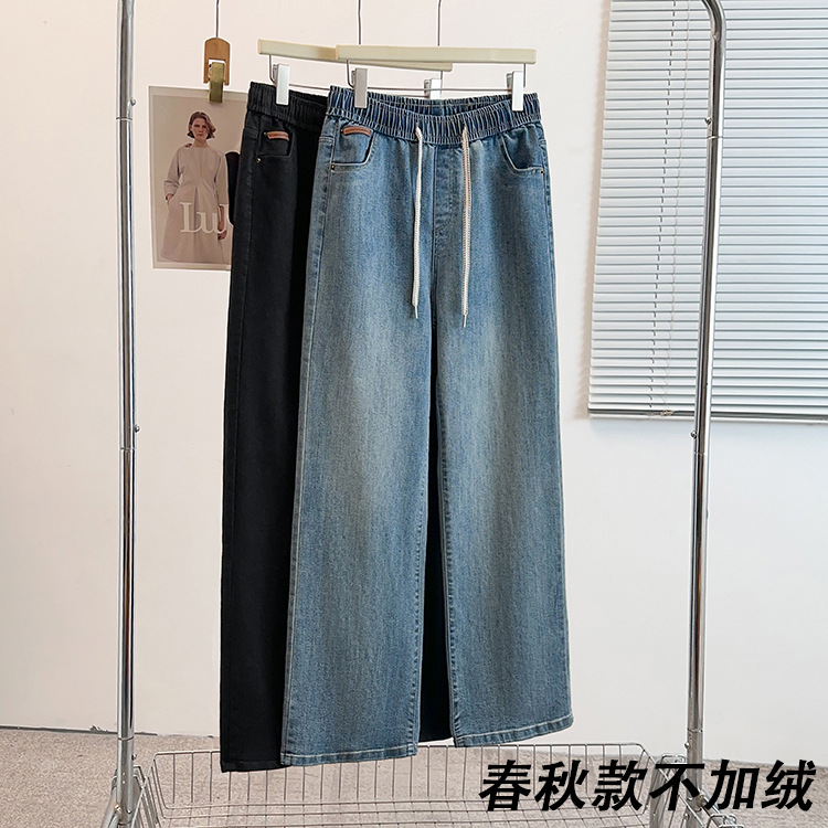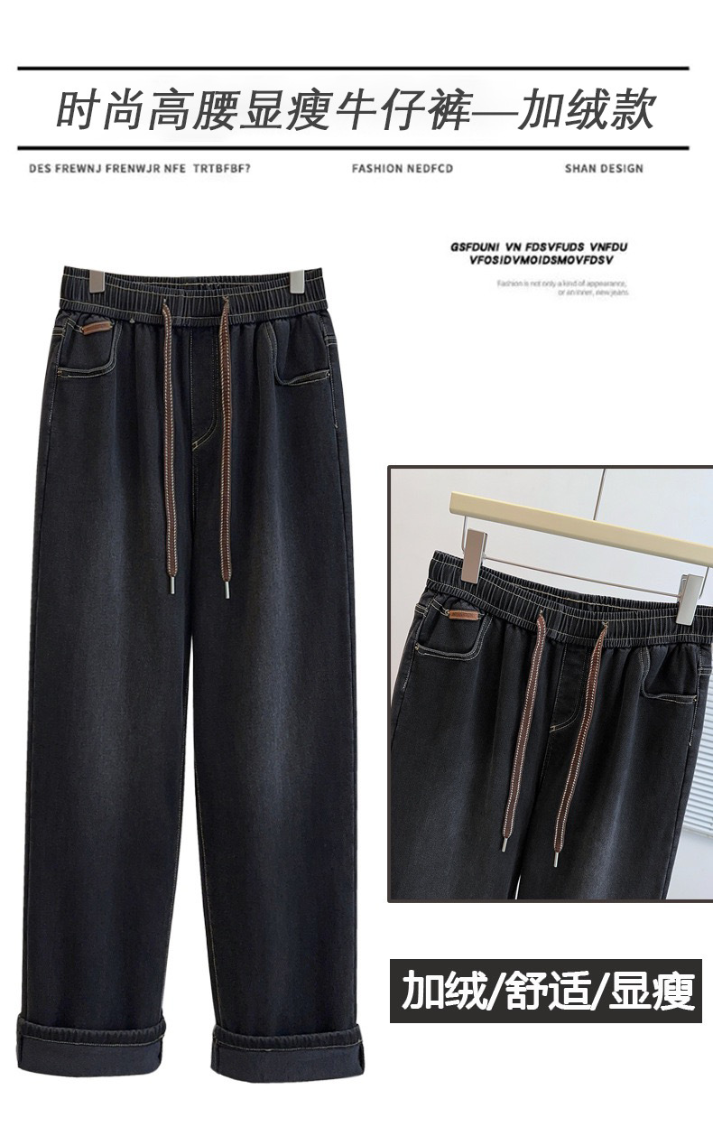 Осенне-зимние простые повседневные брюки прямого кроя больших размеров для женщин, на флисовой подкладке, утолщенные, с высокой талией, эластичные широкие брюки 150kg