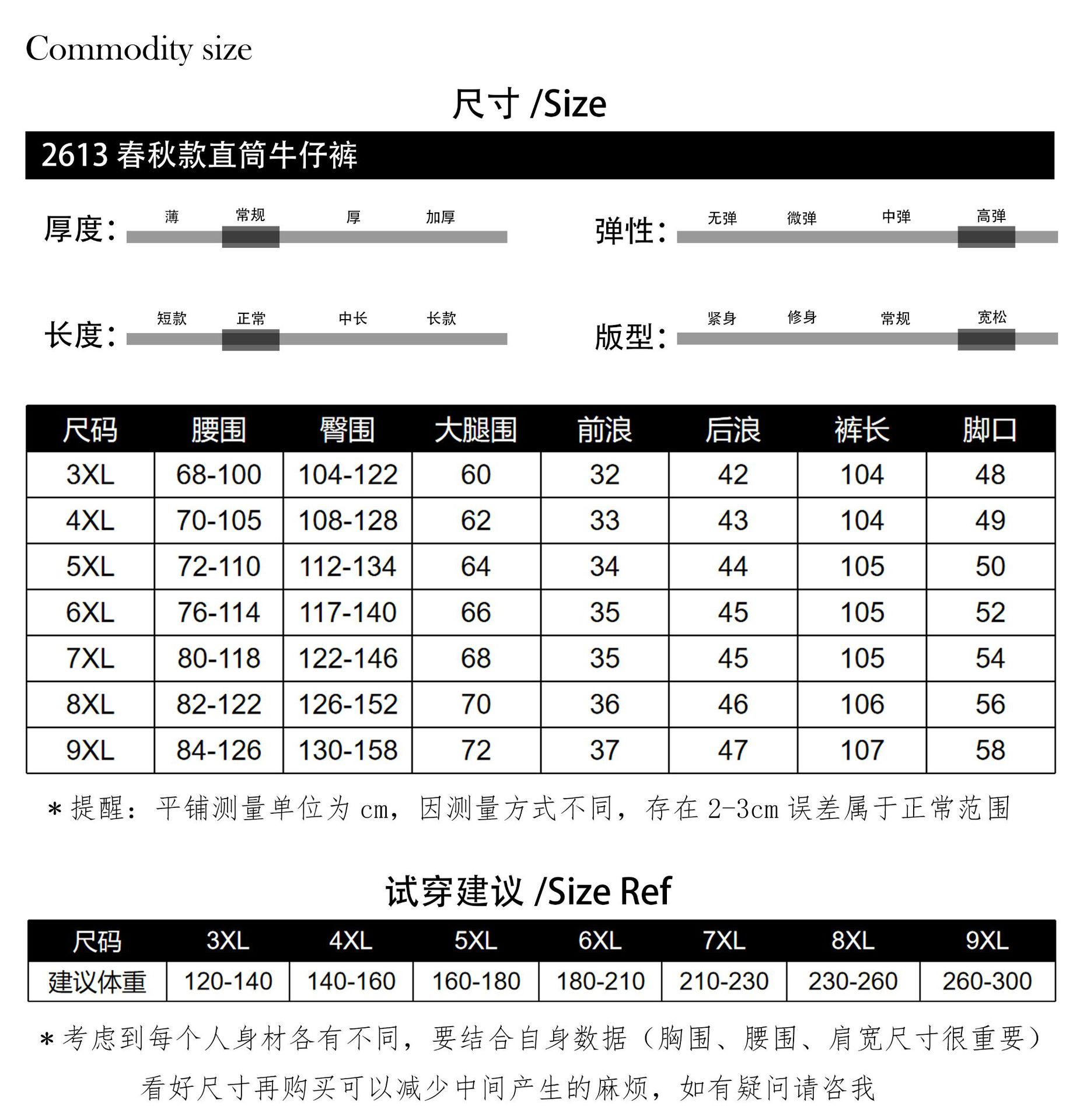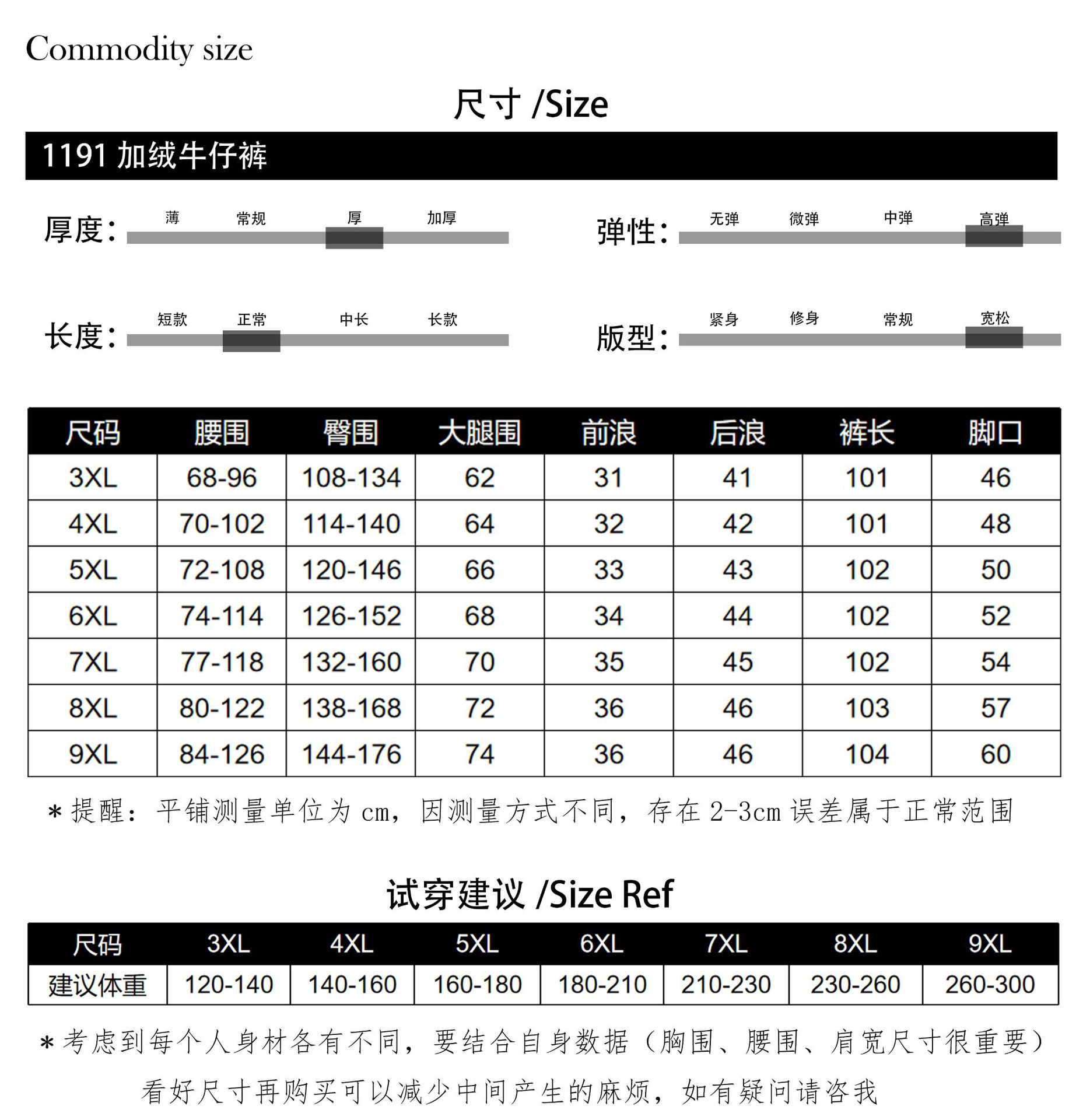 3XL (рекомендуемый вес 60-70kg); 4XL (рекомендуемый вес 70-80kg); 5XL (рекомендуемый вес 80-90kg); 6XL (рекомендуемый вес 90-105kg); 7XL (рекомендуемый вес 105-115kg); 8XL (рекомендуемый вес 115-130kg); 9XL (рекомендуемый вес 130-150kg); L