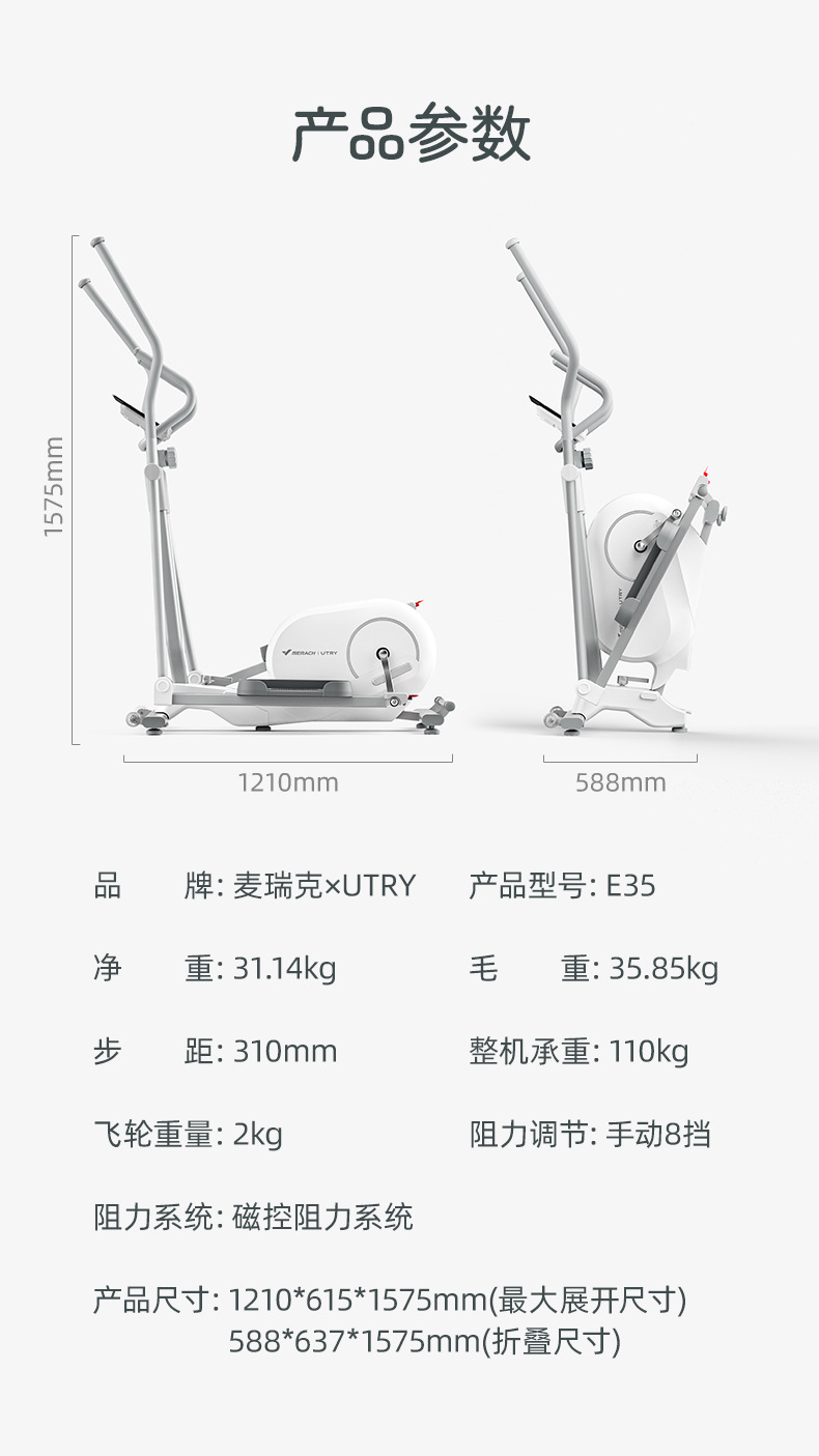 Эллиптический тренажер Merrick MERACH с магнитным управлением, складной, с задним приводом, бесшумный, для дома, для ходьбы и тренировок