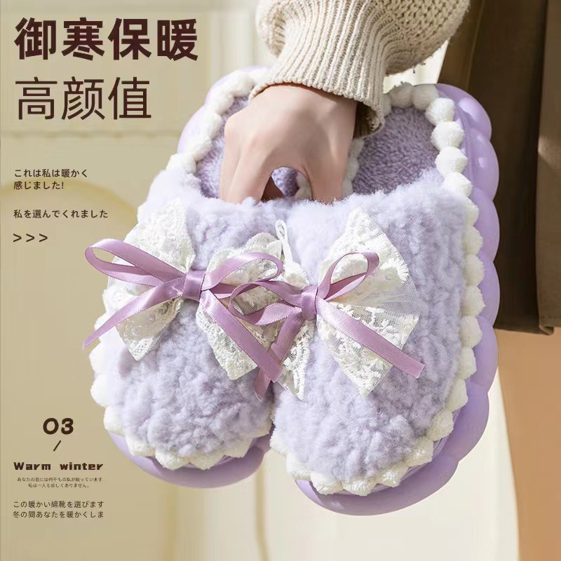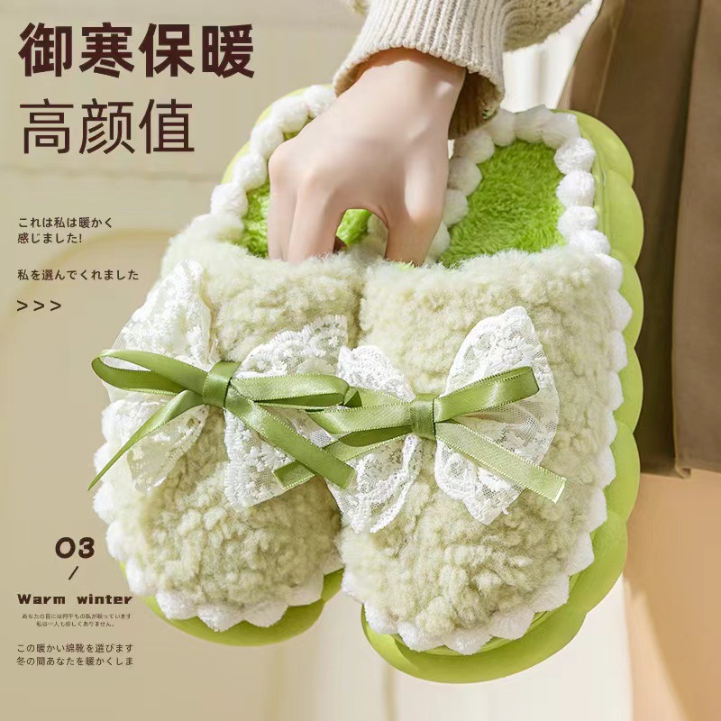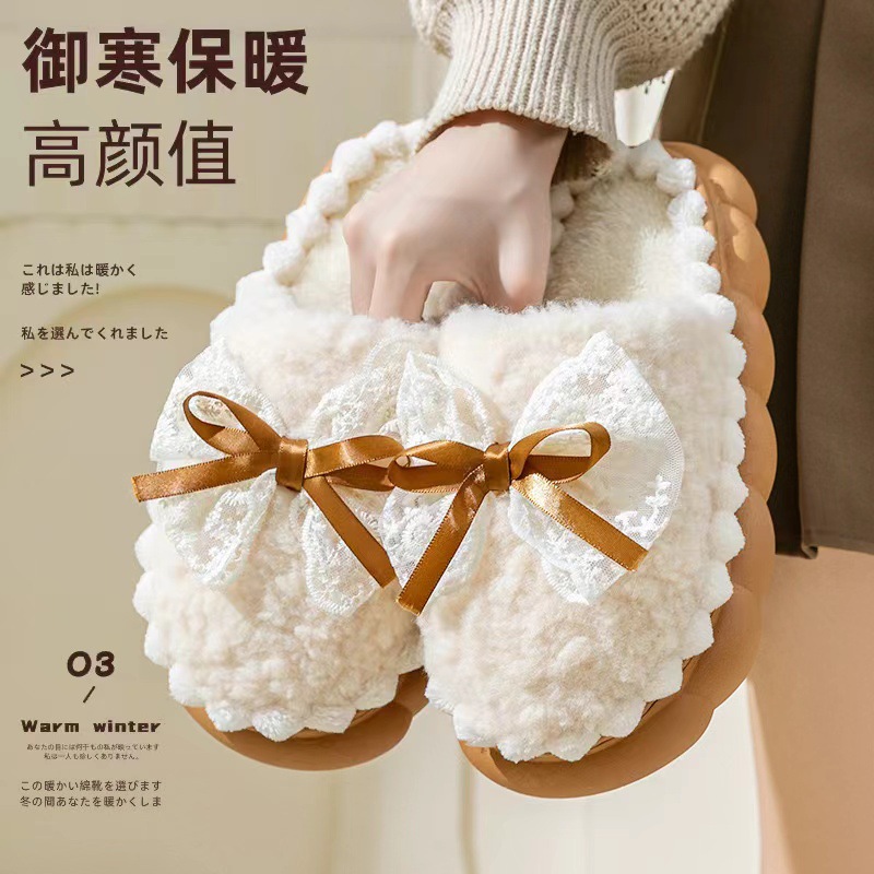 Хлопковые тапочки для женщин на осень и зиму, домашние нескользящие и теплые 2024, новая милая плюшевая сумка с бантом и хлопковыми тапочками для женщин