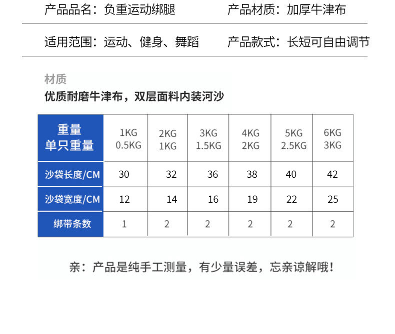 1kg(0.5kg*2); 2kg(1kg*2); 3kg(1.5kg*2); 4kg(2kg*2); 5kg(2.5kg*2); 6kg(3kg*2)