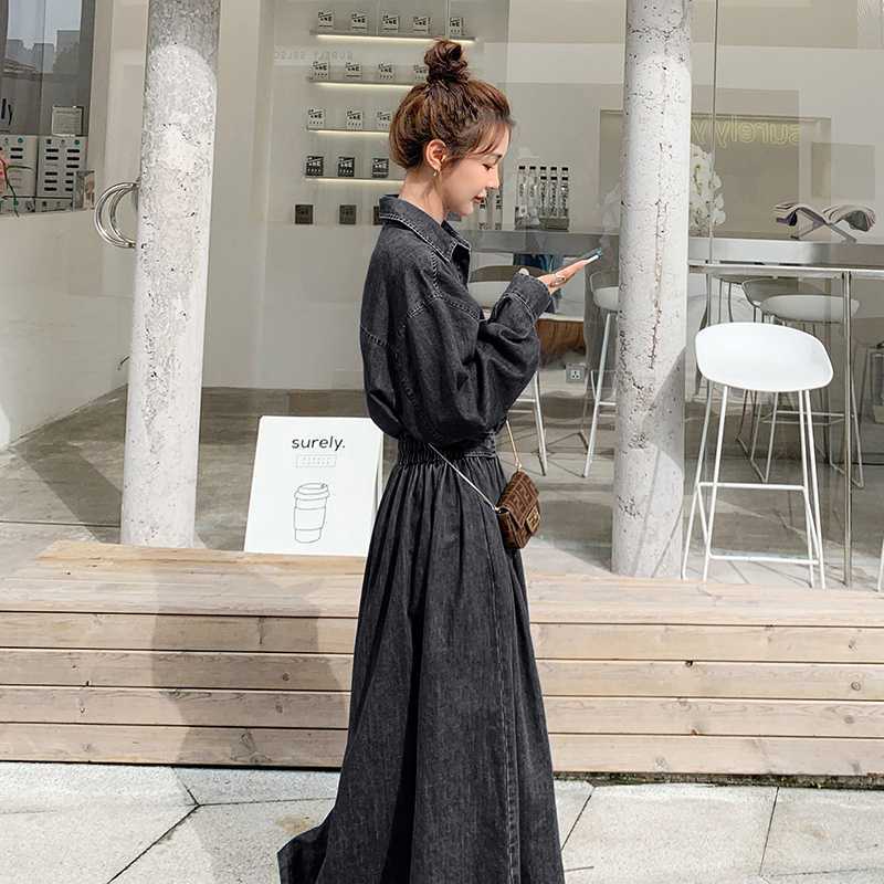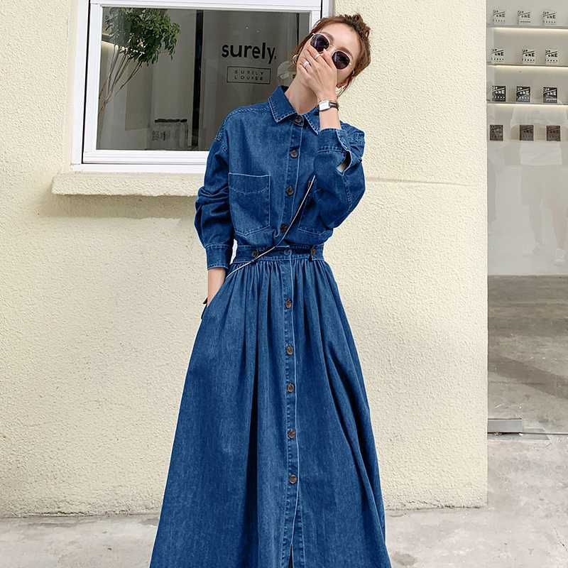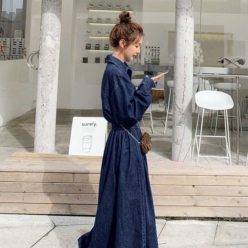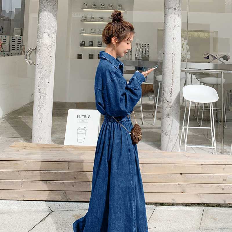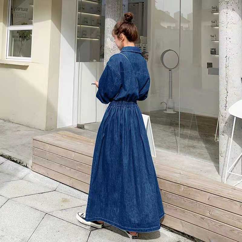 Джинсовая длинная юбка ранней осенью до лодыжки тонкое платье большого размера