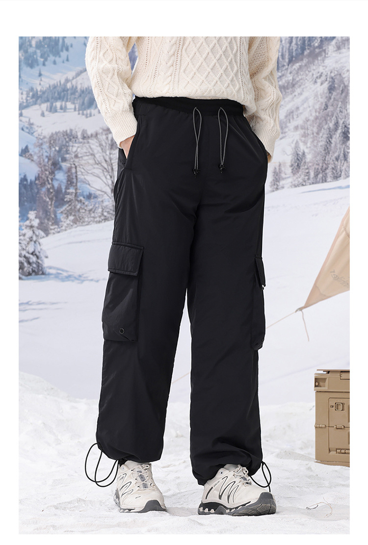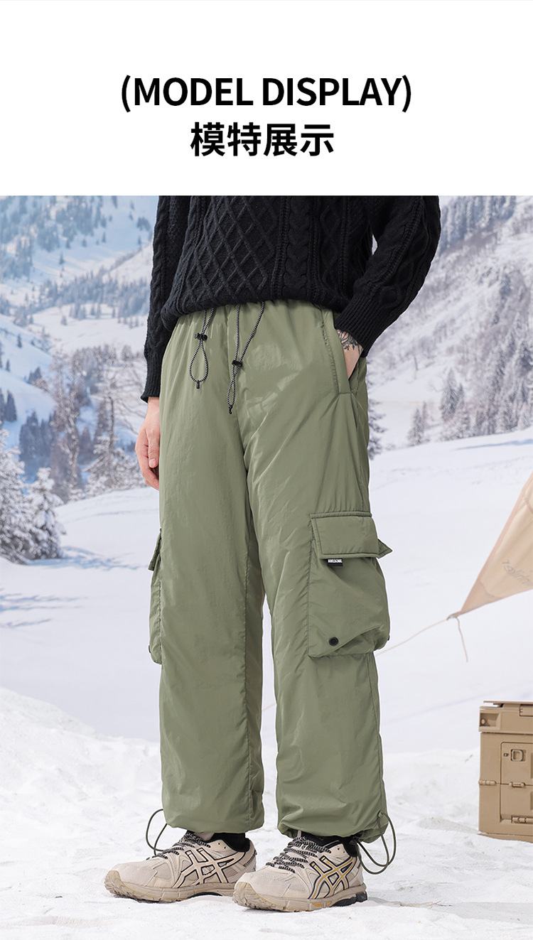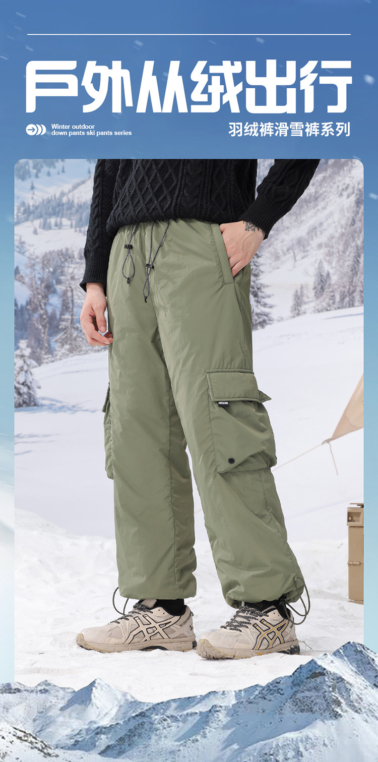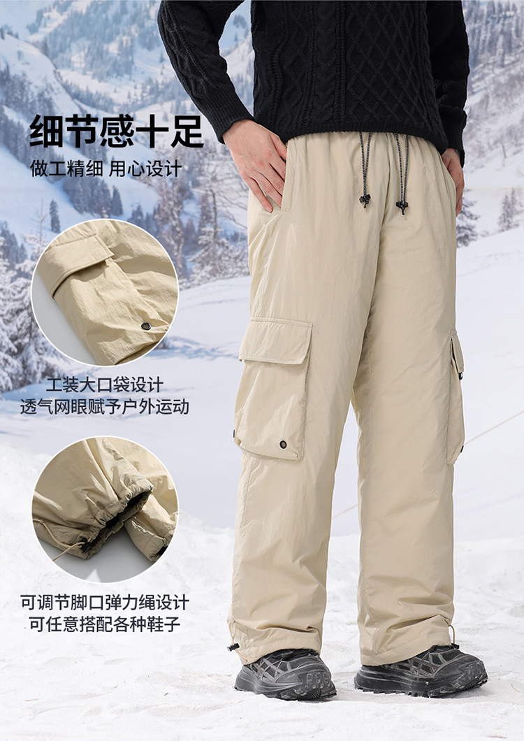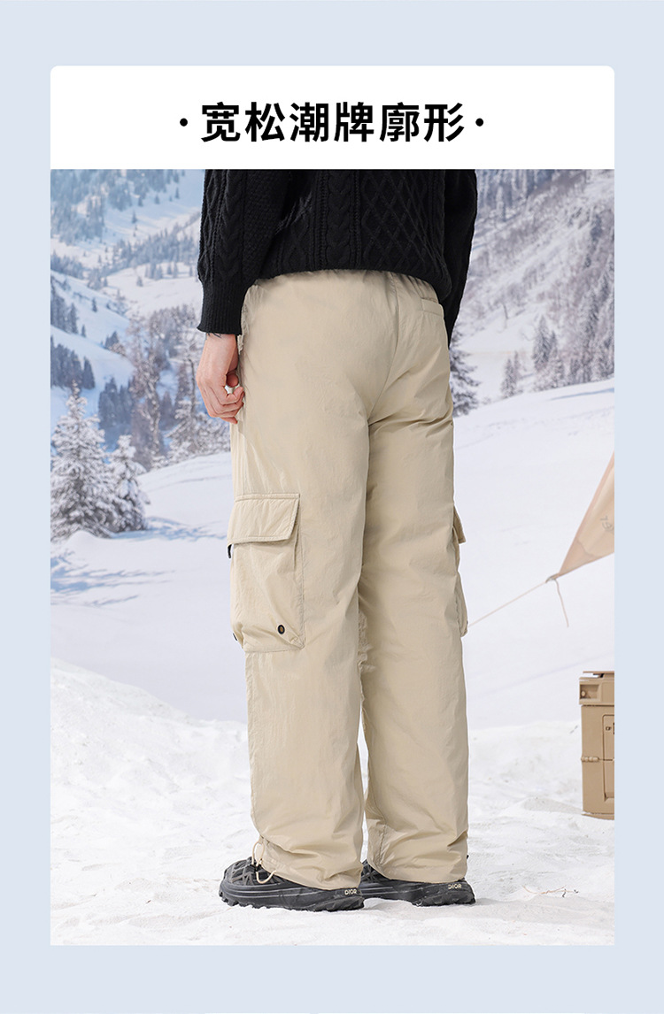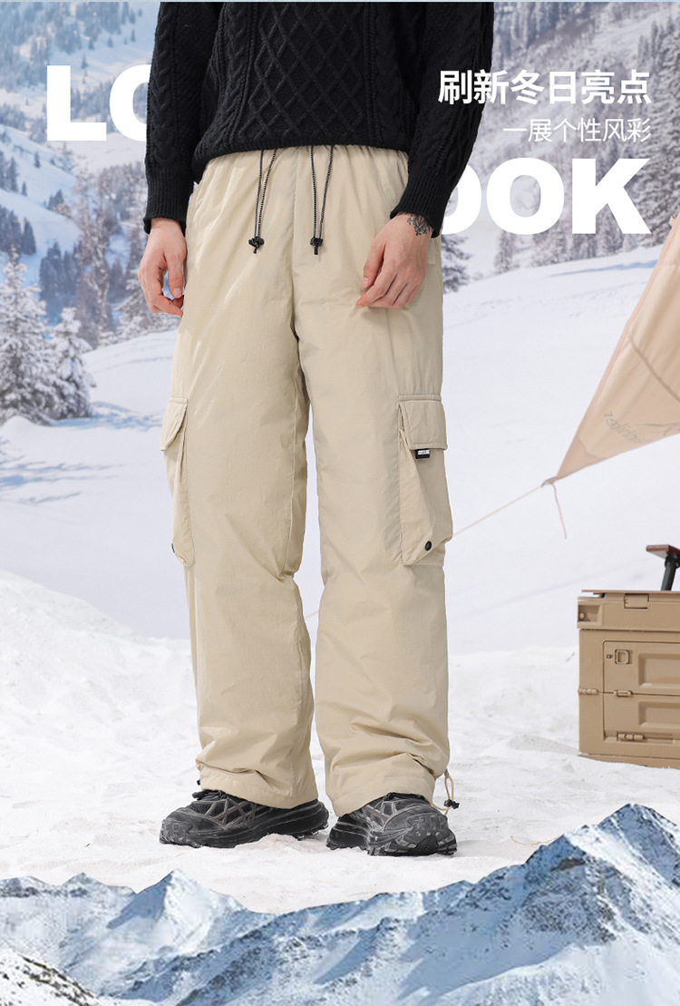 Осенне-зимние новые уличные водонепроницаемые пуховые брюки, мужская свободная широкая рабочая одежда, пуховые брюки, повседневные утолщенные лыжные брюки