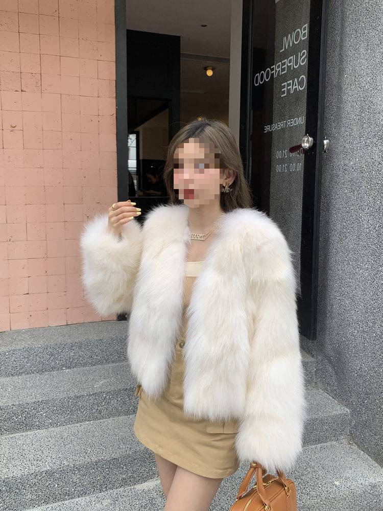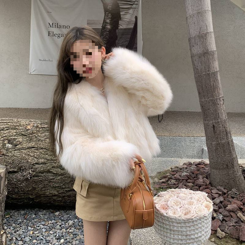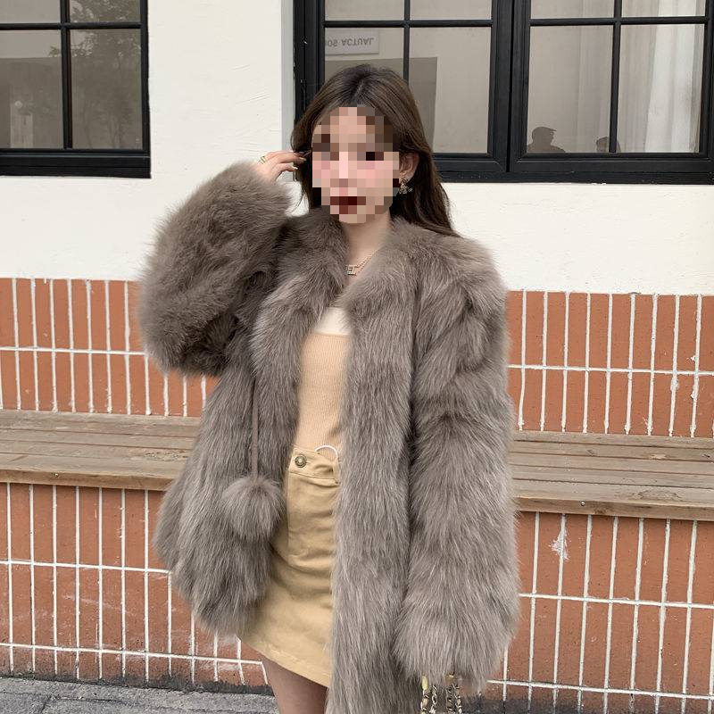 Осенняя и зимняя новая имитация шерстяной куртки лисы женский корейский маленький ароматный ветер шерстяное пальто модная короткая женская одежда
