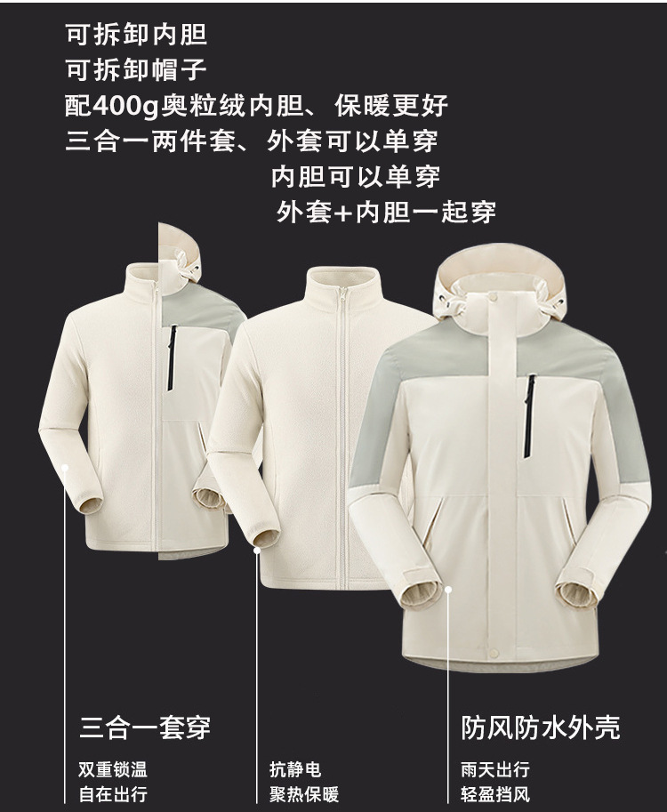 Модернизированная куртка певного человека, женская куртка «три в одном», мужская водонепроницаемая куртка Dupont с тремя доказательствами для альпинизма на открытом воздухе