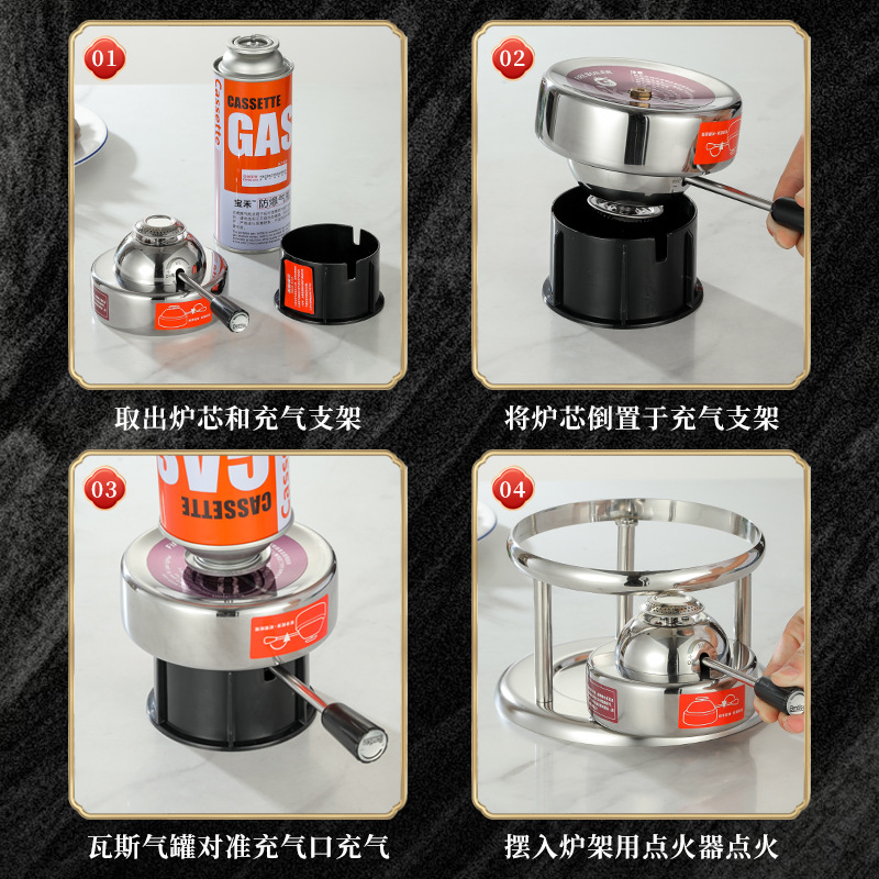 Маленькая газовая плита для одного человека для коммерческого использования в ресторане, надувной горелочный сердечник из нержавеющей стали 304, подставка для плиты, экологически чистые аксессуары для масляного бака.